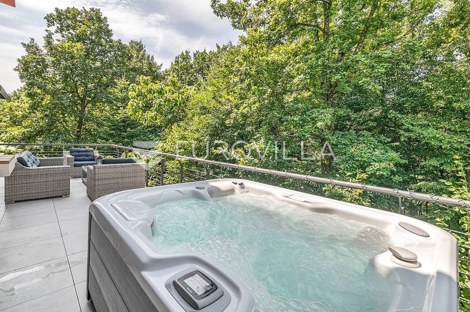 Zagreb, Maksimir, dvoetažni četverosobani stan od 140 m2 u novogradnji. Zgrada je koncipirana kao dvojna kuća s dva dvoetažna stana. Stan se sastoji od ulaznog prostora, open space dnevnog boravka (s kaminom) s izlazom na terasu s jacuzzijem, kuhinje s blagovaonicom te smočnicom. Na gornjoj etaži tri spavaće sobe te dvije kupaonice. Nalazi se na izuzetno mirnoj mikrolokaciji, uvučeno od ceste i prometa, tik uz šumu koja je u vlasništvu stana. Orijentirana pretežno na zapadnu stranu. Svakom pripada dupla garaža te dio vrta. Vanjska stolarija aluminij - drvo (Ariš). Videonadzor i alarm. Nekretnina se nalazi na parceli od 3.000 m2, te iz stana možete izaći direktno u šumu! Ovdje možete uživati u intimi vlastitoga doma i prekrasne hortikulture, a do centra grada je samo 7 min automobilom. Blizina svih bitnijih sadržaja za život, dućan, škola, vrtića , minibus... Blizina njemačko francuske škole na Fratrovcu. DOSTUPNO OD 1.1.2026.