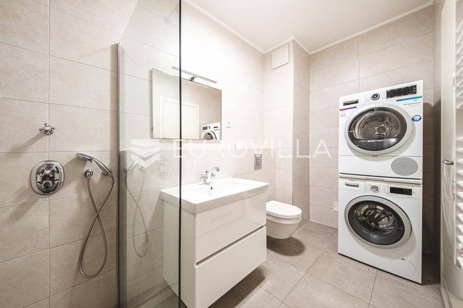 Pripadaju mu i dvije garaže (17m2) te ostava.Stan se iznajmljuje namješten.