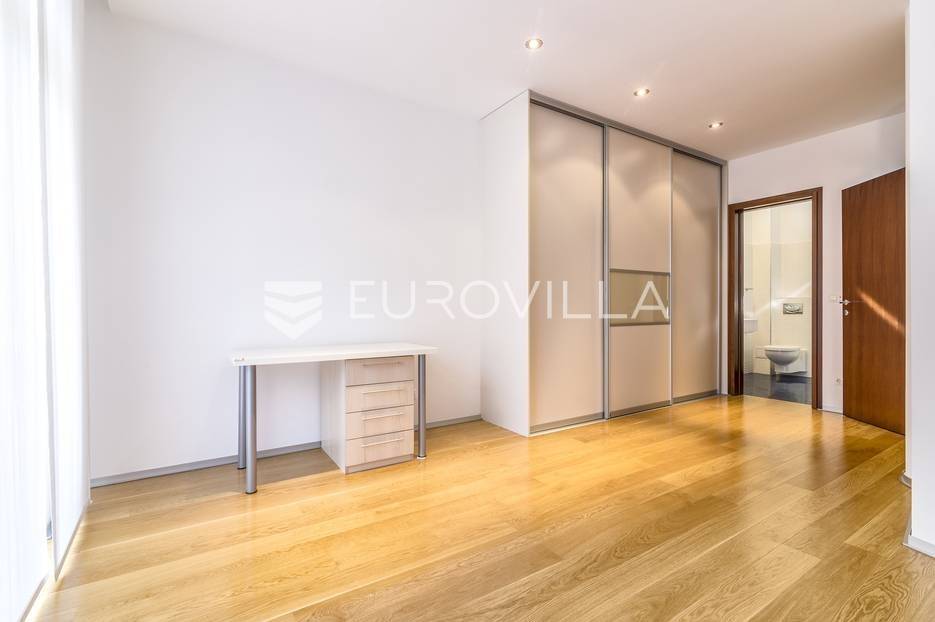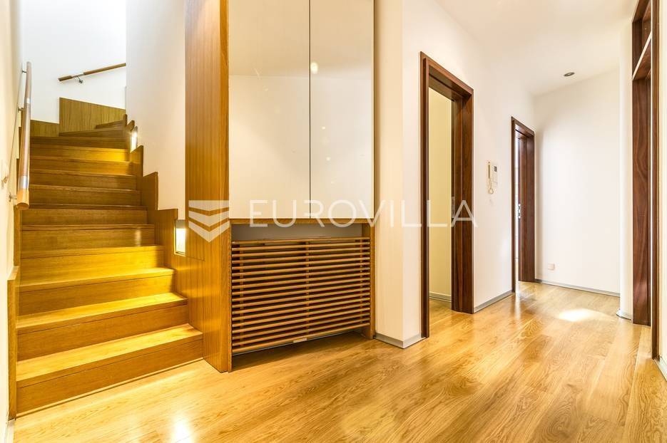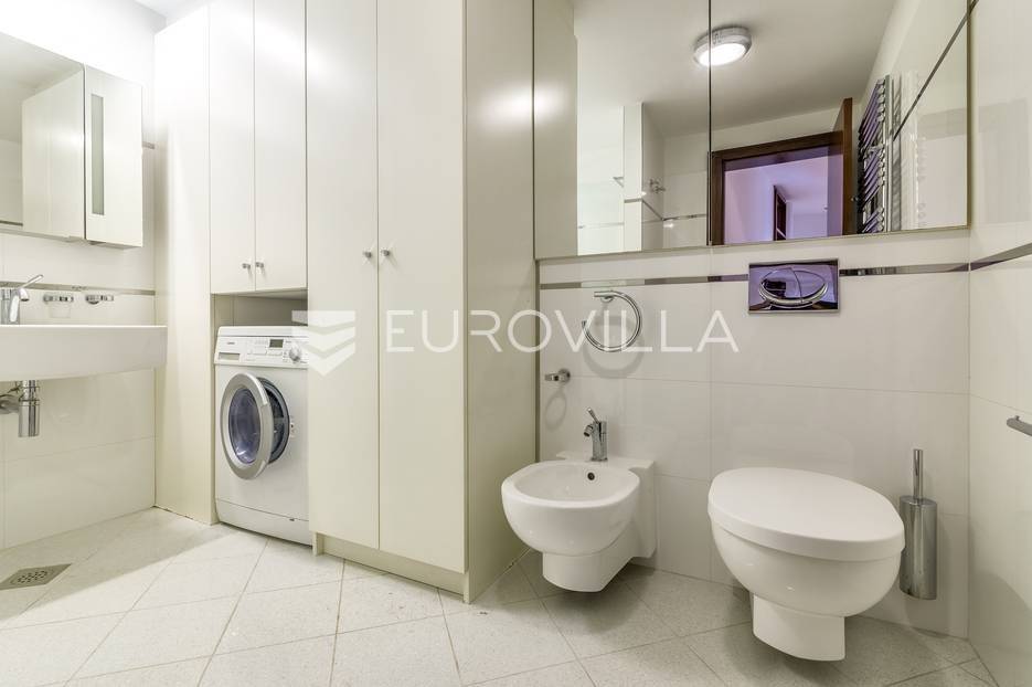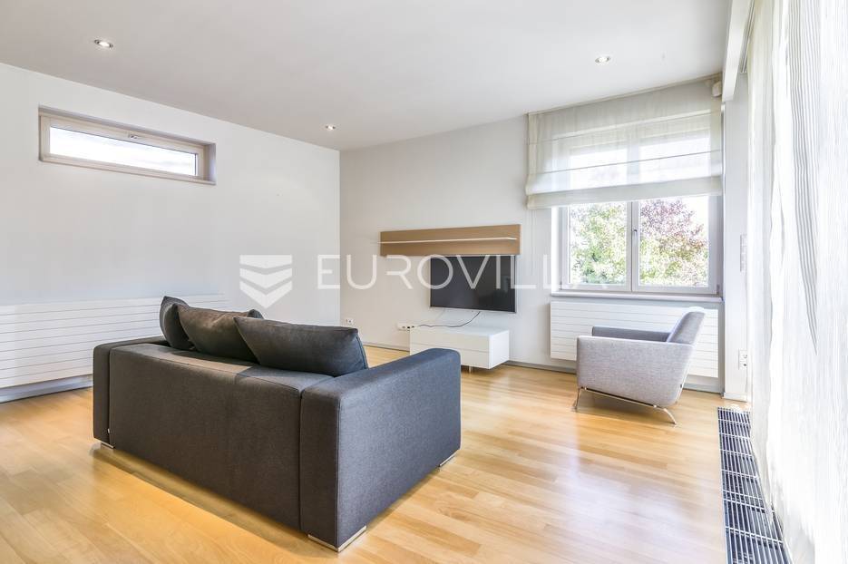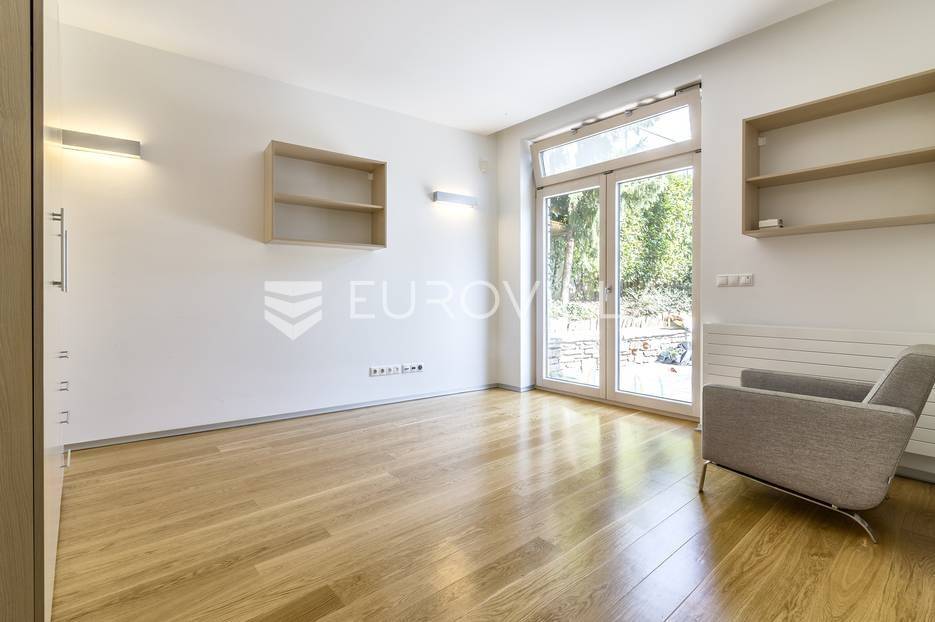 Izniman četverosoban dvoetažni stan za najam na prestižnoj Lašćinskoj cesti u Maksimiru. Smješten u novijoj urbanoj vili (2006.), renoviranoj 2019., ova nekretnina nudi 145 m2 luksuza i prostranosti. Orijentacija istok-jug osigurava obilje prirodnog svjetla. Vila s tri stambene jedinice jamči privatnost i mirno okruženje. Mikrolokacija uz zelenilo pruža savršen balans urbanog života i mira, idealno za obitelji koje cijene komfor i vrhunsku opremljenost.Dvoetažni raspored nudi optimalnu funkcionalnost. Gornja etaža (prizemlje) obuhvaća ulaz, kupaonicu te prostrani otvoreni koncept kuhinje, blagovaonice i dnevnog boravka s izlazom na 32 m2 terase i privatni vrt. Donja etaža (suteren) sadrži tri spavaće sobe i dvije kupaonice. Stan je vrhunski uređen, opremljen ugradbenim ormarima, video portafonom, alarmom, električnim roletama, satelitskom i kabelskom TV, stropnom ventilacijom te detektorima dima. Grijanje je plinsko centralno.Ovaj dom ističe se bogatim vanjskim i zajedničkim sadržajima. Najmoprimci koriste prostran privatni vrt, kućicu s roštiljem i dječje igralište. Unutar vile je zajednička teretana i sauna s tušem. Stanu pripadaju spremište u podrumu te dva vanjska parkirna mjesta. Mikrolokacija na Lašćinskoj cesti je neprocjenjiva: u blizini su škole, vrtići, bolnice, fakulteti, trgovine, restorani i javni prijevoz. Odlična prometna povezanost uz mir zelenog okruženja. Ovaj stan nudi stil života koji spaja luksuz, funkcionalnost i iznimnu lokaciju.
