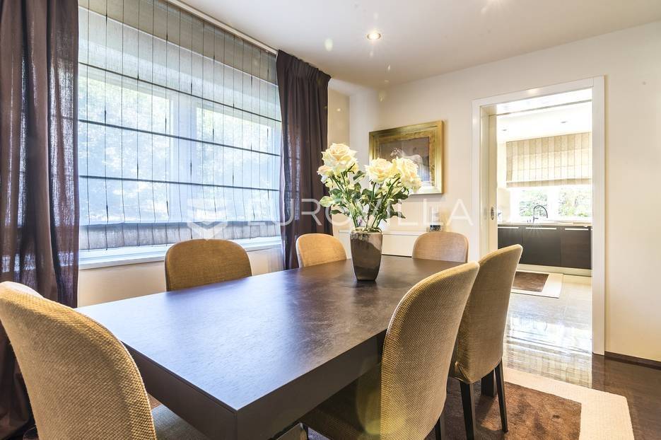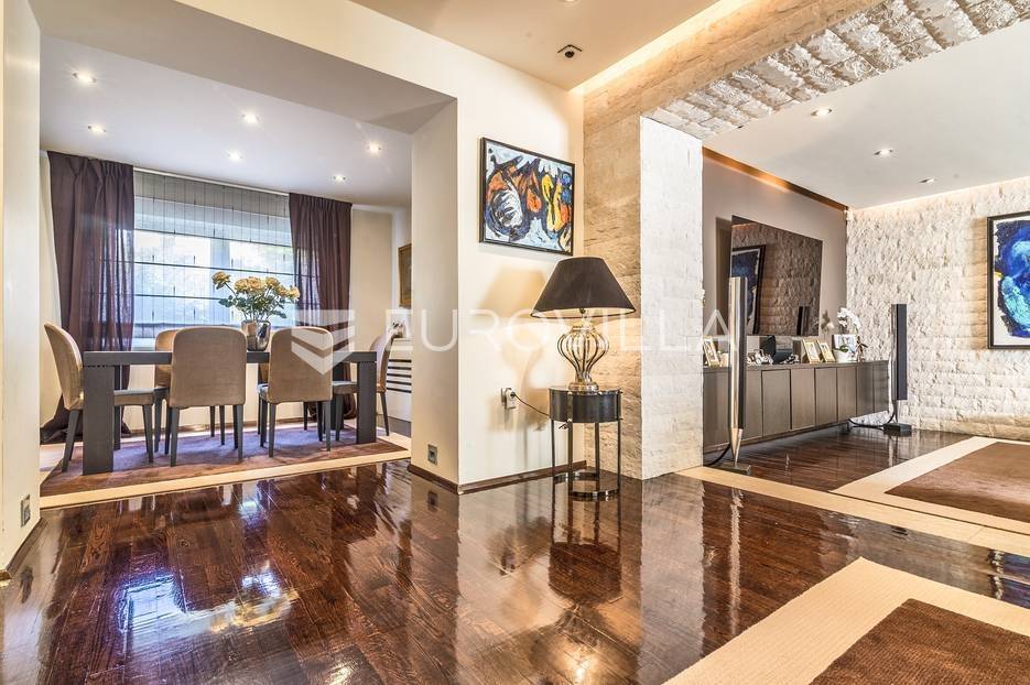 Zagreb, Gračani vila NKP 450m2 smještena na zemljištu 680m2. Građena i projektirana prema najvišim standardima te opremljena dizajnerskim namještajem.Vila je koncipirana na 3 etaže povezane centralnim stubištem, s ukupnom neto stambenom površinom od 530 m2, s pripadajućom ograđenom parcelom od 1050 m2.Podrum : spremište, gym, vinski podrum, kotlovnica, vešerajPrizemlje: garaža za 2 automobila, wc, soba, kupaonica, prostran dnevni boravak, kuhinja, blagovaonicakupaonom s walk in tušem i kadomKat: master soba/wellness 54m2 sa jacuzziem, ogromnom kupaonicom, wc-om i saunom, radna soba, garderoba, spavaća soba s garderobom i loggia.Nalazi se na odličnoj lokaciji, samo nekoliko min automobilom do centra grada. U blizini Meridijan 16 centra i nove žičare za Sljeme. Na udaljenosti 500-800m nalaze se škole, vrtići i trgovine. Glavni gradski prijevoz autobusna stanica za Mihaljevac i Svetice na 200m, tramvajska stanica Gračansko dolje 500m.Ostale informacije na upit.