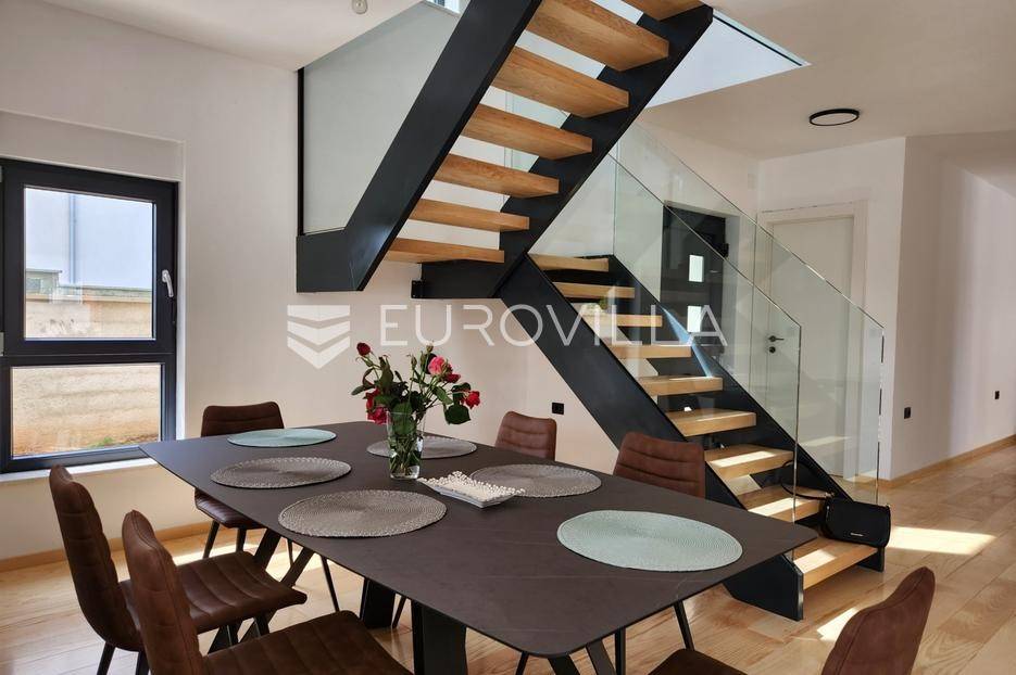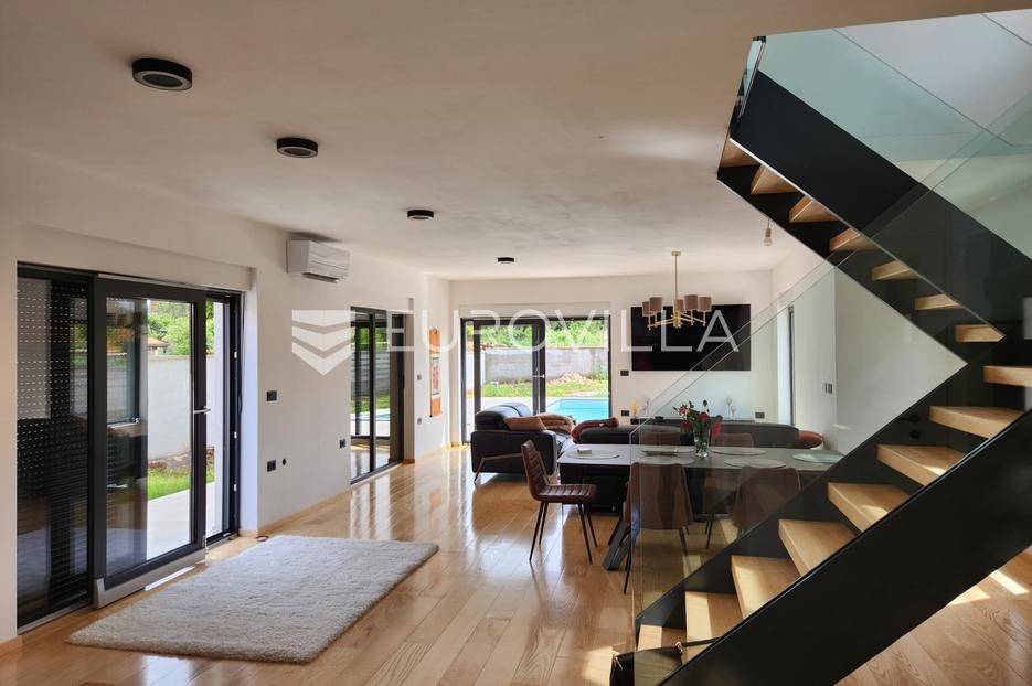 U Ližnjanu lijepom manjem mjestu na jugu Istarskog poluotoka, smjestila se ova elegantna moderna kuća NKP 180 m2 raspoređena na dvije etaže. Kuću okružuje velika uređena okućnica od 500 m2 na kojoj se nalazi veliki bazen smješten na južnoj sunčanoj strani gdje se nalazi i vanjski roštilj. U prizemlju je velika i moderna talijanska kuhinja, dnevni boravak s velikom staklenom stijenkom i izlazom na bazen, toalet, spremište. Dvorišni dio prizemlja osigurava privatnost stanarima dok vanjska terasa s roštiljem uz bazen pruža niz mogućnosti za druženja. Na gornju se etažu penje modernim staklenim stubištem. Tri velike svijetle spavaće sobe s kupaonama i izlazom na terase dominiraju cijelom etažom. Hrastov parket i podno grijanje postavljeni su po cijelom katu. Blizina mora, restorana i ostalih sadržaja s jedne strane, moderne linije, dizajn, te privatnost koja okružuje kuću čine je jedinstvenom u ponudi u okruženju u kojem se nalazi. Za više informacija stojimo Vam na raspolaganju.