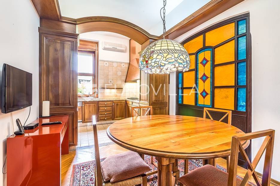 Pantovčak, uređen i opremljen četverosoban stan površine 238 m2 koji se nalazi prizemlju vile građene 1893.godine, kompletno adaptirane 2010. godine. Razveden u dvije etaže.