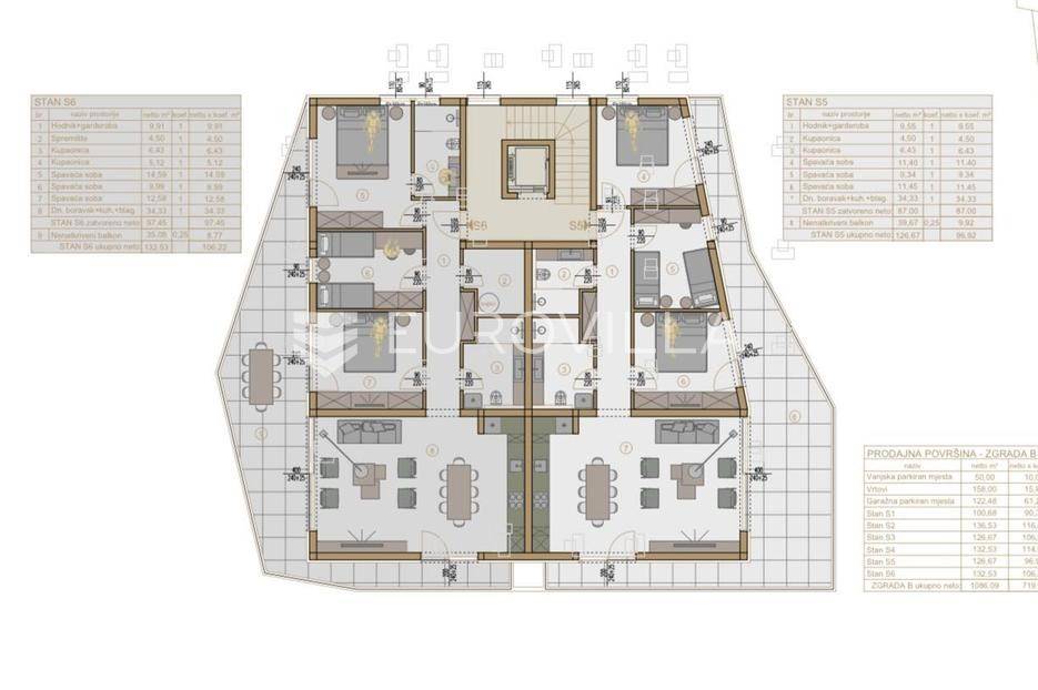 Luksuzni projekt na jednoj od najtraženijih lokacija u Puli s pogledom na more i 400 metara od mora. Predmetna nekretnina, oznake S5, smjestila se na drugom katu te se sastoji od ulaznog hodnika, garderobe, tri spavaće sobe, dvije kupaonice, open space dnevnog boravka s kuhinjom i blagovaonicom te natkrivenog balkona. Opisani dnevni boravak kao i spavaće sobe pružaju izlaz na natkriveni balkon. Mogućnost kupovine vanjskih parkirnih mjesta ili garažnih parkirnih mjesta koji su se smjestili u podrumu te kojima se pristupa s vanjske strane kroz rampu, dok s unutarnje liftom koji komunicira kroz cijelu zgradu (dodatno se naplaćuju po koeficijentu te se nadodaju na m2 stana). Interijer će krasiti prvoklasna keramika u svim prostorijama osim soba koje su opremljene parketom. Grijanje i hlađenje osigurano je putem klima uređaja kao i podno grijanje na struju. Predviđeni završetak gradnje je zima 2025. godine. Odlična mikrolokacija, mirno i tiho susjedstvo, blizina centra Pule i svih sadržaja pružaju mogućnost investicije u svrhu turizma ili za svakodnevni život.