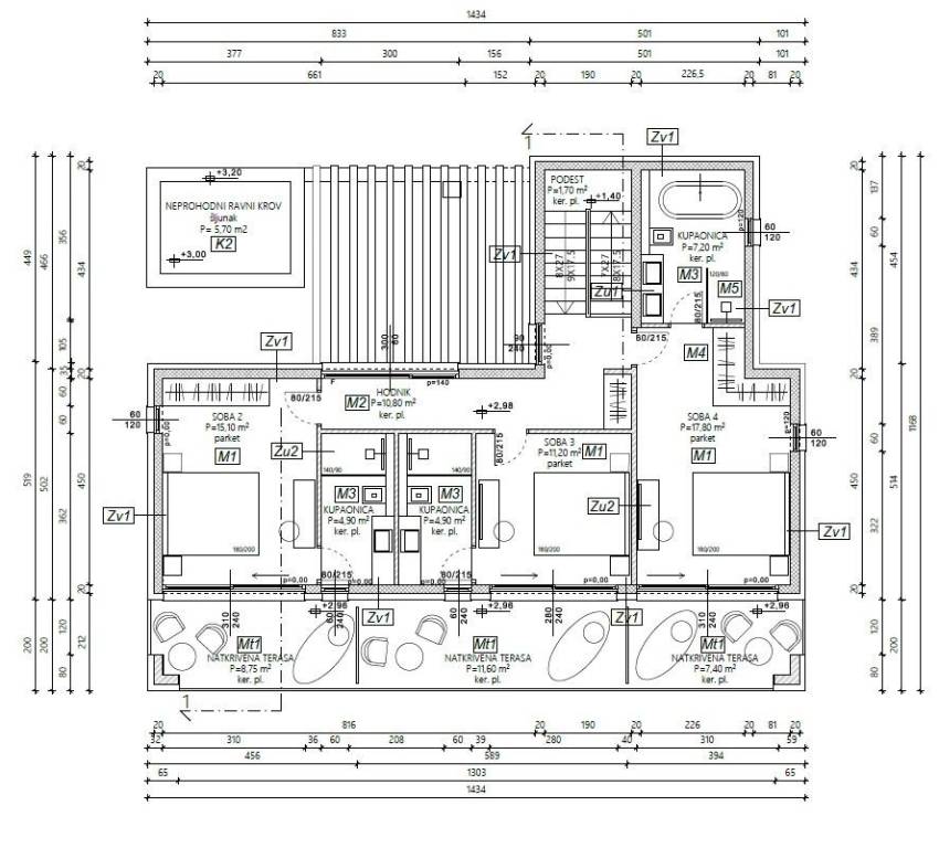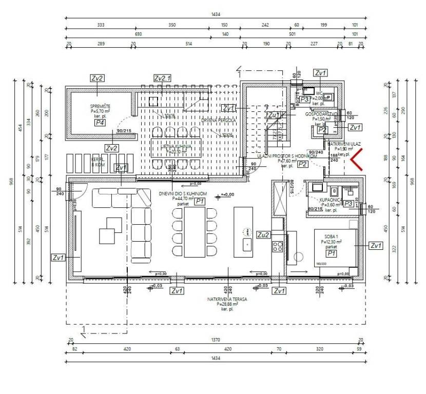 Villa1 - ground floor + first floor - total net area 191 m² (4 bedrooms + 4 bathrooms + toilet) + pool with sunbathing area + summer kitchen + covered terraces + 2 parking spaces = €800,000