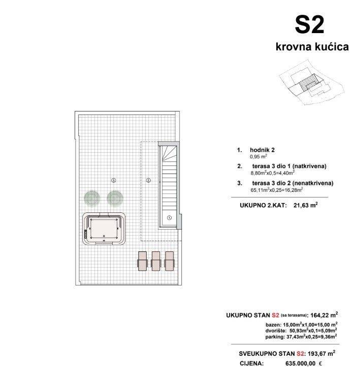 Construction of a modern residential building with three terraced units will begin in winter 2026. The property is located in a new residential area of Vodice, in a quiet location, 800 m from the beach and 1,200 m from the town center.