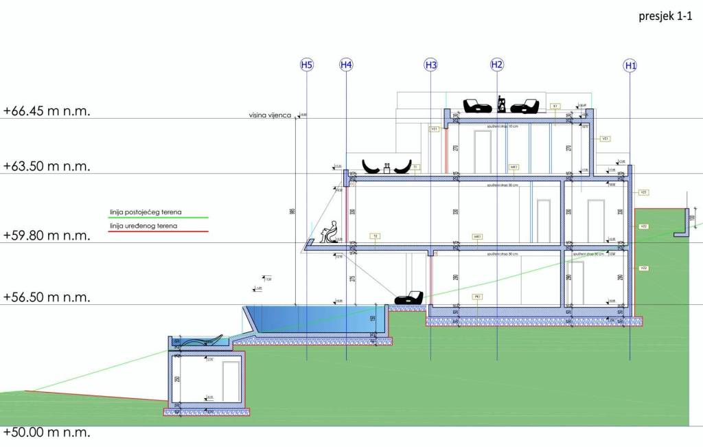 Villa Paklenica - basement + ground floor + first floor - living area of 270 m² (3 bedrooms with walk-in closets + 3 bathrooms) + 4 terraces + sauna + gym + gaming room + rooftop terrace (76 m²) + infinity pool (63 m²) + courtyard with fireplace and barbecue + garage (36 m²) + 4 covered outdoor parking spaces, on a plot of 1,100 m² = €2,400,000