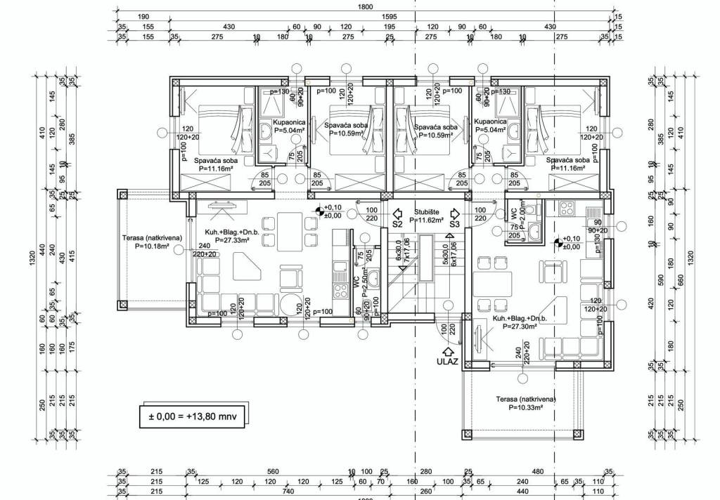 Apartment S-3 – Ground floor – living area 56.09 m² (2 bedrooms + bathroom + toilet) + covered terrace (10 m² – South) + storage room 3 (4.8 m²) + outdoor parking space 12.5 m², total net area 66.08 m² = EUR 290,000 (VAT included)