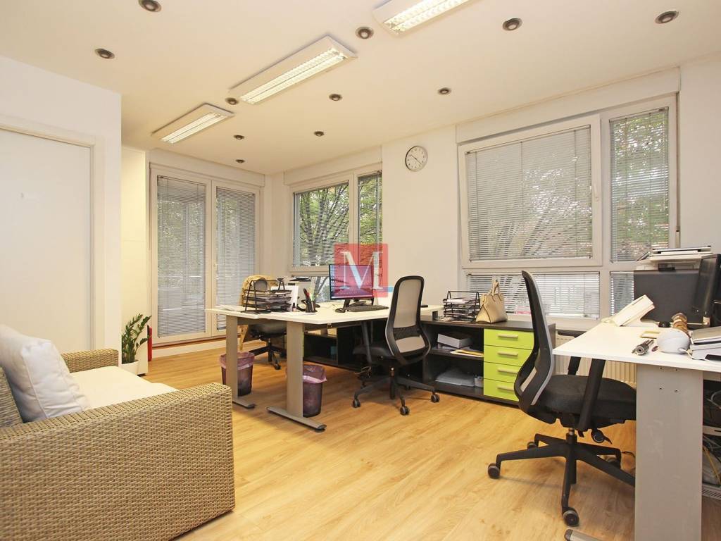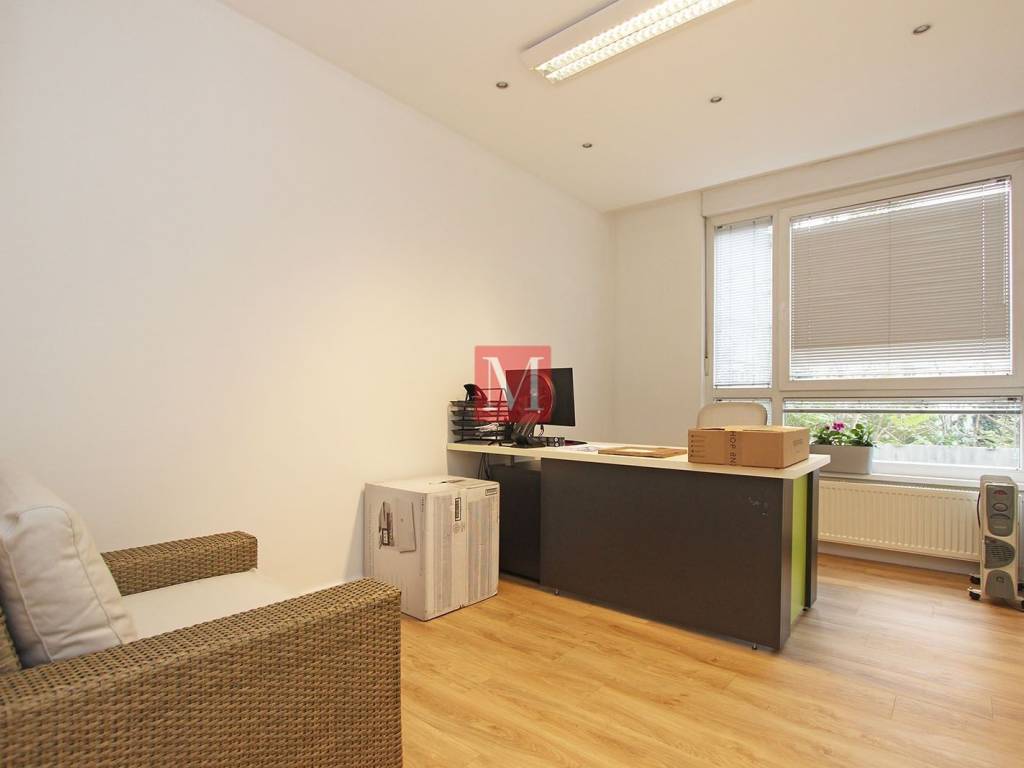 Prostor površine 109m2 sastoji se od ulaznog hodnika s prostorijom za prijem, konferencijske sale, 3 uredske prostorije, 2 kupaonice, čajne kuhinje i 2 loggie.