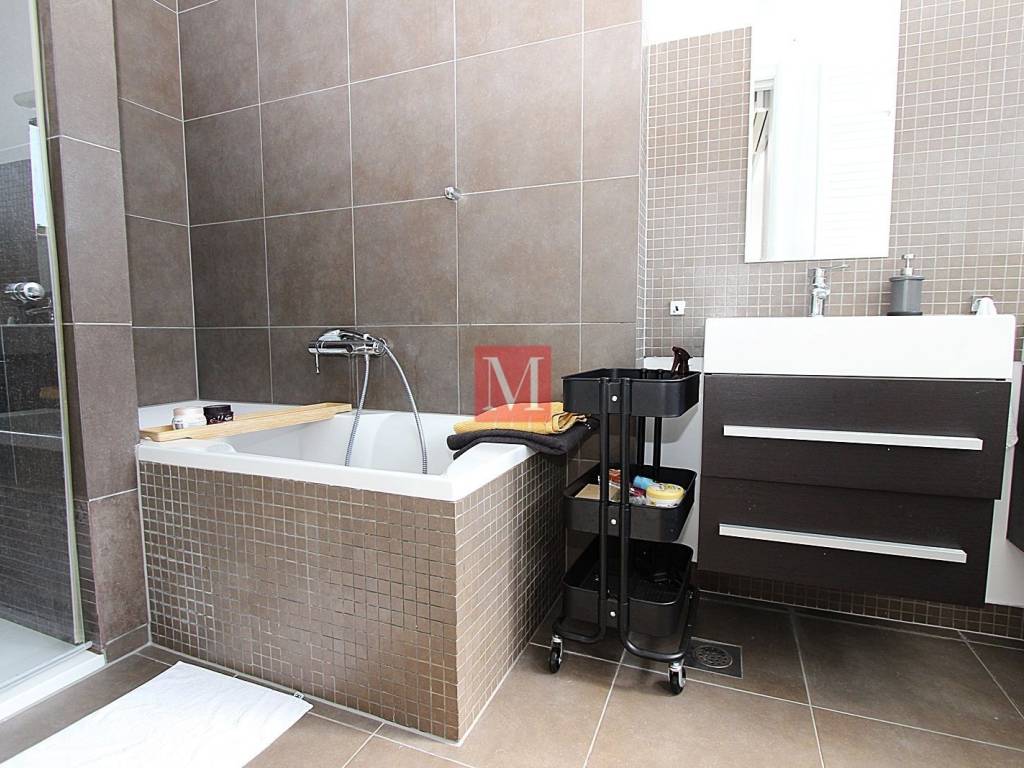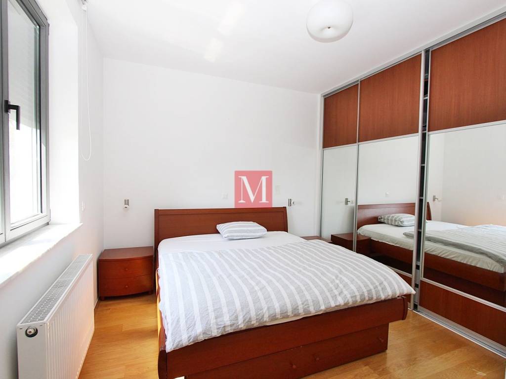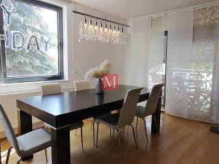 Attractive 4-bedroom apartment on the 1st floor of a newer urban villa in Kozjak. It consists of an entrance hall with built-in wardrobes, an open plan kitchen with a dining and a living area with access to a south-facing terrace, 3 bedrooms, a study, 2 bathrooms and a guest toilet. The apartment comes with 1 parking in a garage as well as 1 outdoor parking space in the yard. All facilities (food store, public transport, kindergarten, school) are in the immediate vicinity. Less than 5 minutes drive to the cathedral and the strickt city center. 3 minutes by car and 14 minutes on foot to the French and German international schools. The apartment is fully furnished, equipped with an alarm and 3 air conditioners. Available from 1 November 2025 and rented long-term, with a mandatory deposit. Agency commission: 1 month rent+VAT.