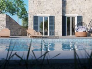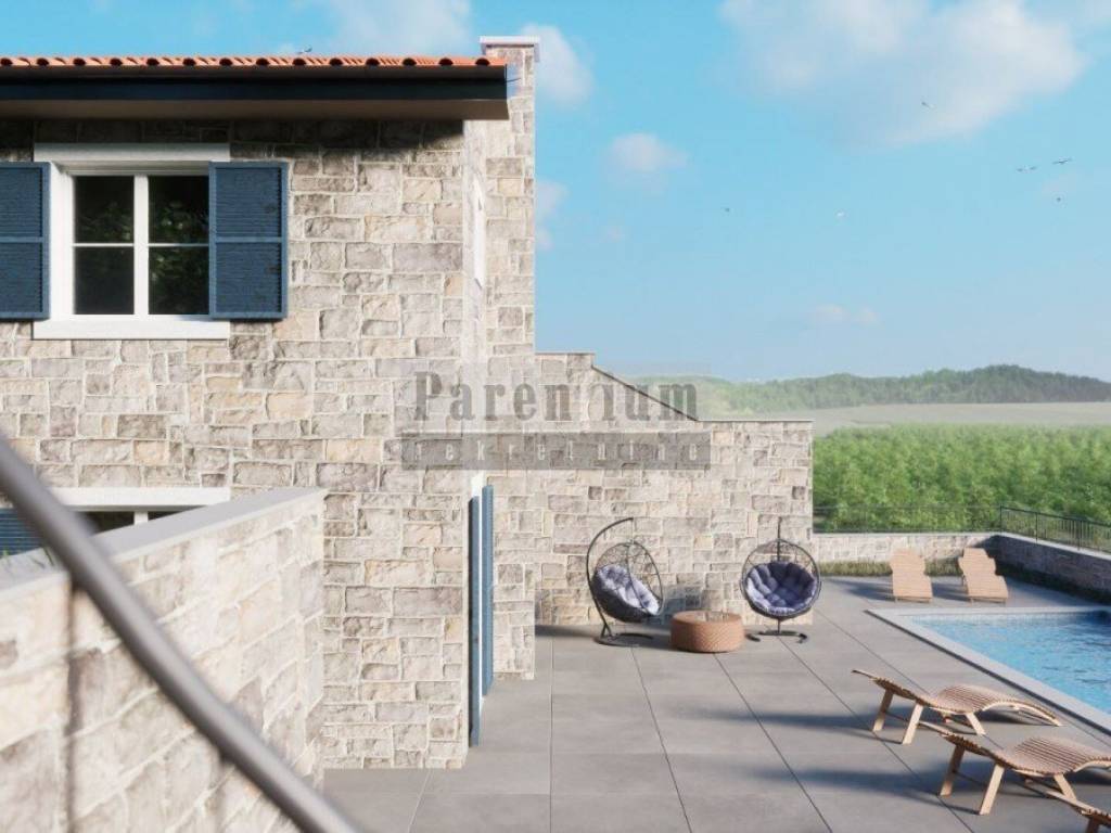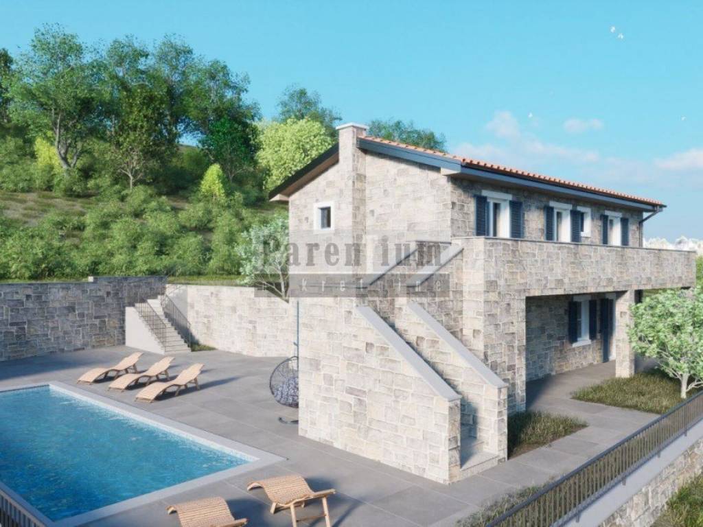 This villa with a swimming pool is being built on a beautiful hill, not far from Buje, on a plot with a view. Total usable area of 140 m2. The ground floor of this property has a kitchen with dining area, living room, additional guest toilet and two terraces. On the first floor there are three bedrooms, each with its own bathroom and storage. All materials used in construction are of top quality. The planned completion of the construction of this beautiful villa is the middle of 2024. Beautiful property in one of the most beautiful places in Istria, known for its indigenous beauty, fine wines and famous restaurants. Ideal property for living or as an investment for tourism.