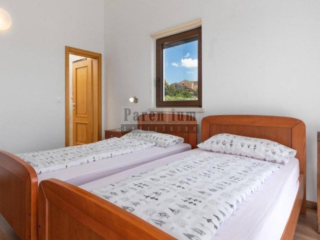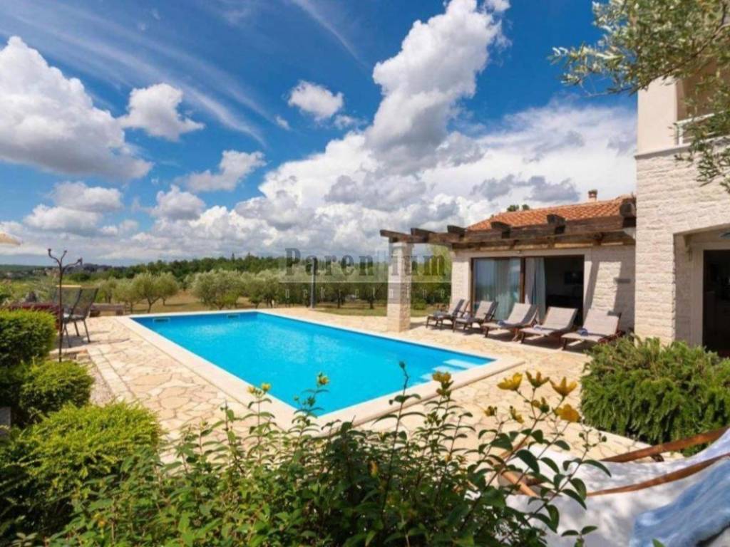 Poreč, surroundings, a few minutes' drive from the beach and the sea, this beautiful villa with a pool of 166m2, spread over two floors, is for sale. On the ground floor of the house we have a living room with dining room and kitchen, one bedroom with its own bathroom and guest toilet. On the first floor we have two more bedrooms, each with its own bathroom and terrace. The terrace offers a beautiful view of the sea and the surrounding greenery. On the 500m2 garden, we have a swimming pool with a sunbathing area, with an unobstructed view, given that the villa is on the edge of the village.