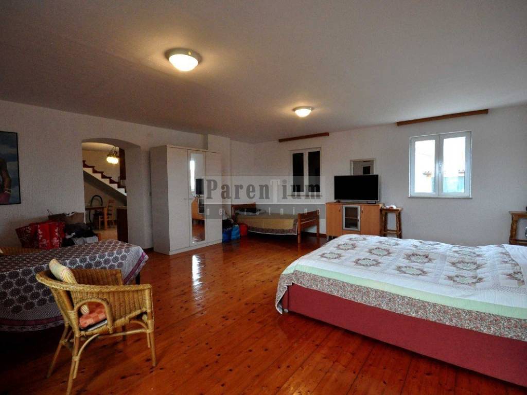 By the external staircase we climb to the first floor where there is a spacious bedroom of approx. 40m2, another kitchen, bathroom and pantry. The internal staircase leads to the second floor where there are two spacious bedrooms and one slightly smaller.