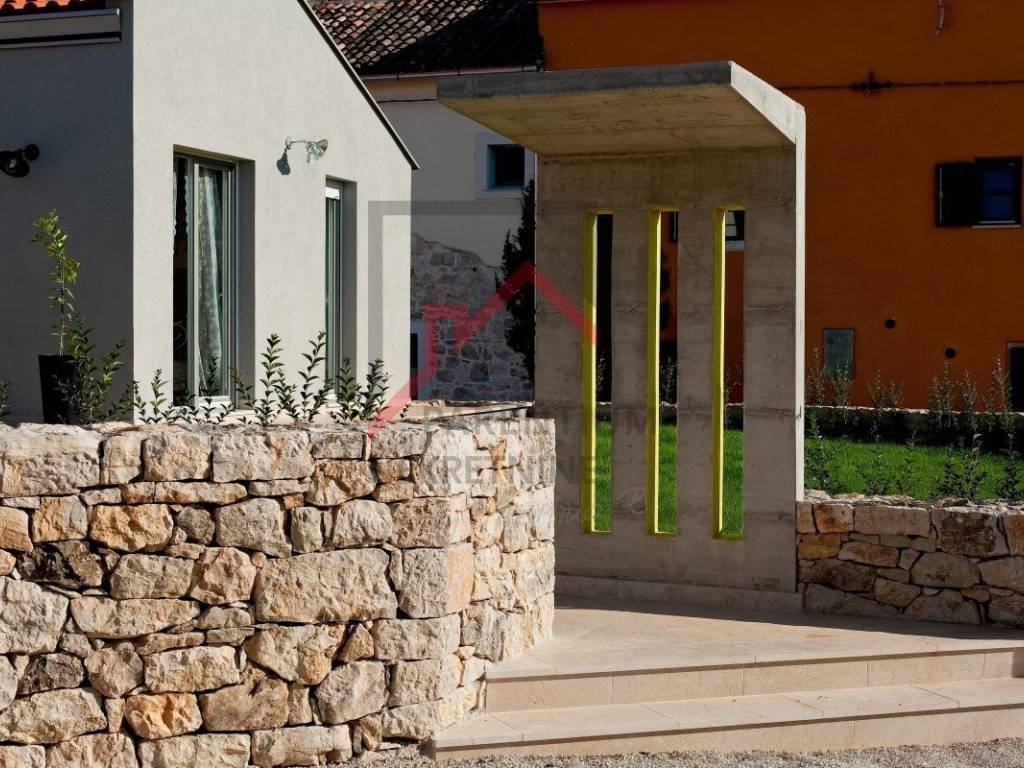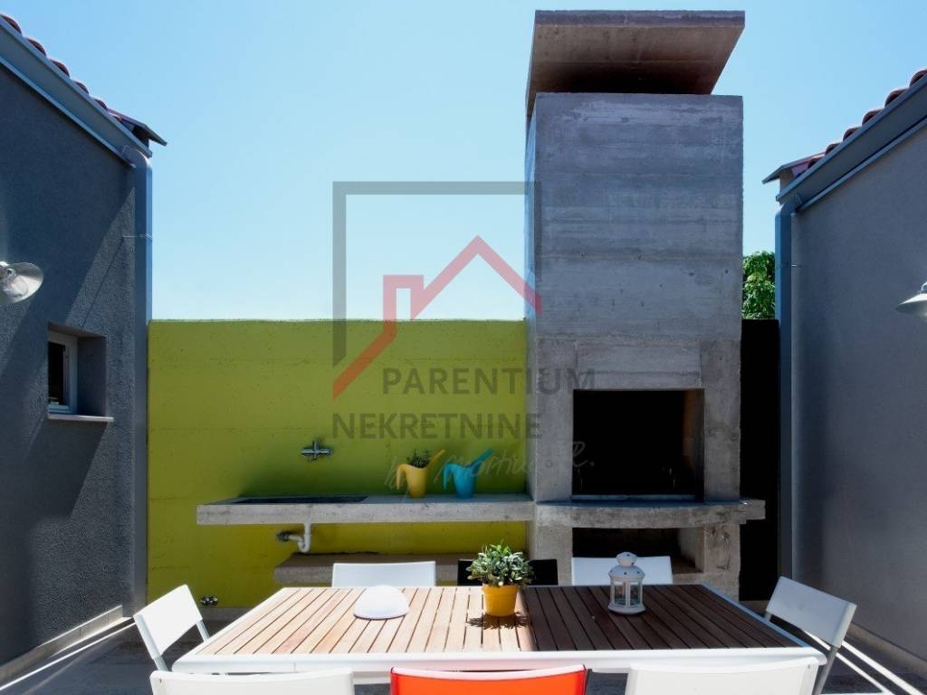 Dvorište je u potpunosti ograđeno i uređeno kako bi se osigurala maksimalna privatnost. Uz bazen sa sunčalištem, u stražnjem dijelu dvorišta nalazi se natkrivena ljetna kuhinja s roštiljem, idealna za tople večeri i druženja s obitelji i prijateljima.
