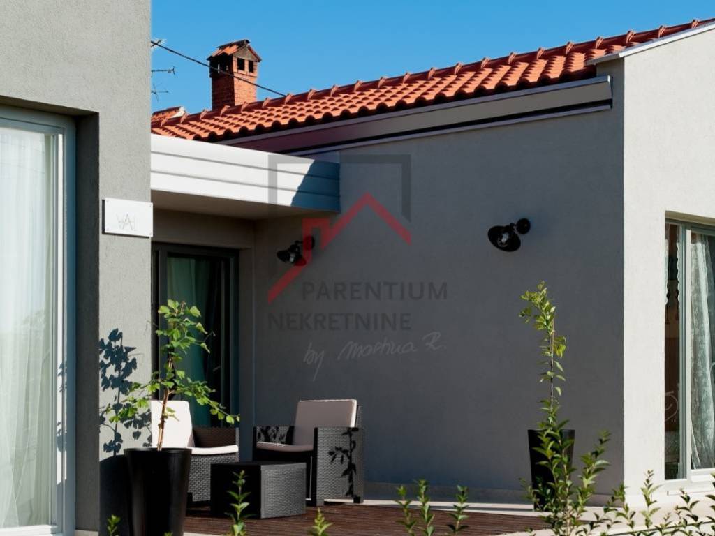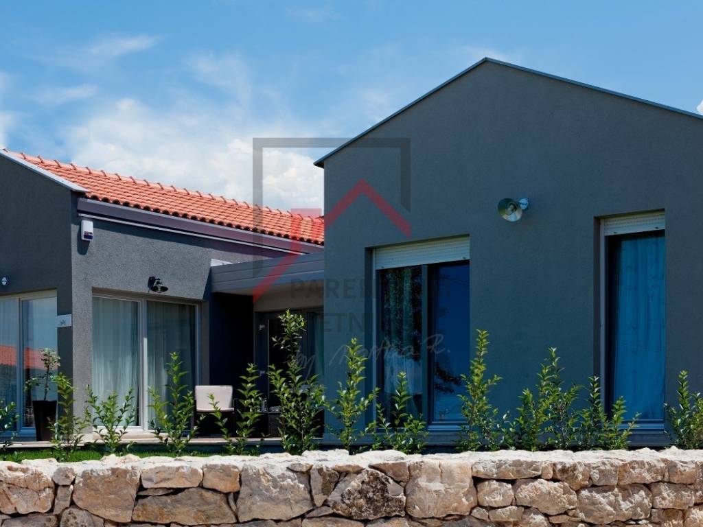 Prodaje se elegantna prizemnica s bazenom, smještena u mirnom i zelenom naselju, samo 4 km od kristalno čistog Jadranskog mora i popularnih porečkih plaža.