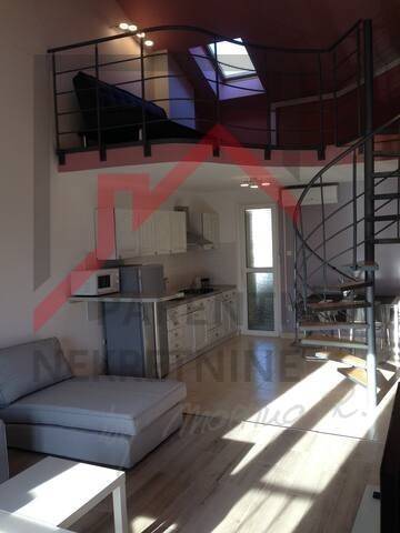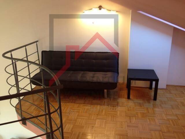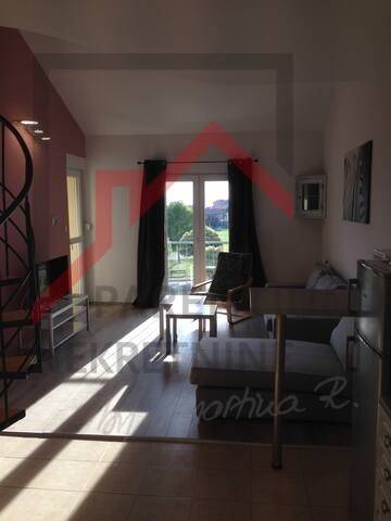 A flat is for sale in a residential building in a great location. The flat is located on the 3rd floor of the building. The flat is on two floors: on the first floor there is an entrance hall, bathroom, kitchen with a dining room with a small terrace, living room and bedroom with access to the terrace. We climb the stairs to the second floor a gallery, where another bedroom and a study can be placed. The flat is heated via an air conditioning unit.