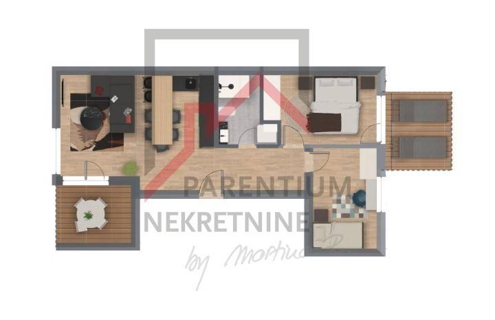 Apartment with a total area of 63 m with terraces, 56 m2 of living space arranged for maximum functionality and comfort:
