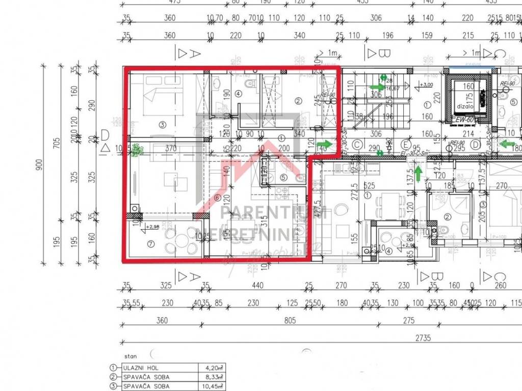 The apartment of 65.71 m2 consists of a living room with an open space concept kitchen and dining room, 2 bedrooms, bathroom, toilet, hallway and a covered terrace. The apartment is heated by electric underfloor heating, the first phase for the installation of air conditioning has been set.