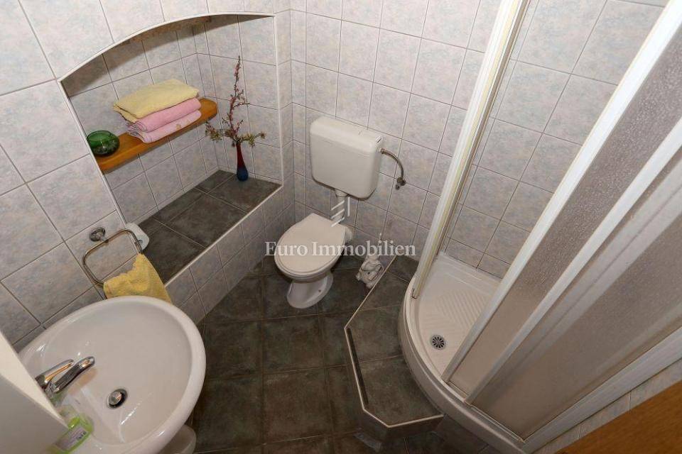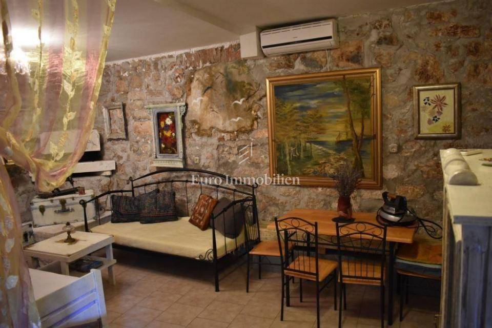 In a great location on the island Ugljan for sale is stone house with four apartments only 100 m from the sea. The house is an excellent investment for the purpose of tourist renting. Each apartment has a living room and a kitchen, a terrace, a bedroom and a bathroom. The house has a beautifully landscaped garden with a barbecue and has a beautiful view of the sea and Velebit. The proximity of the center and the sea gives added value to this property.