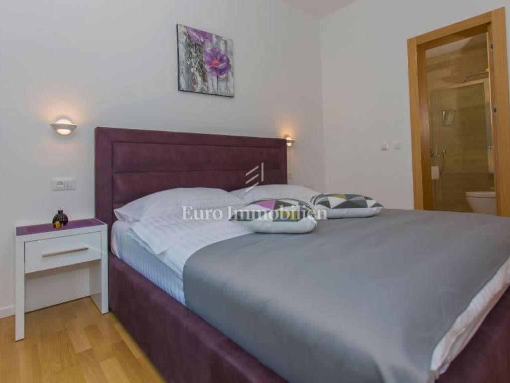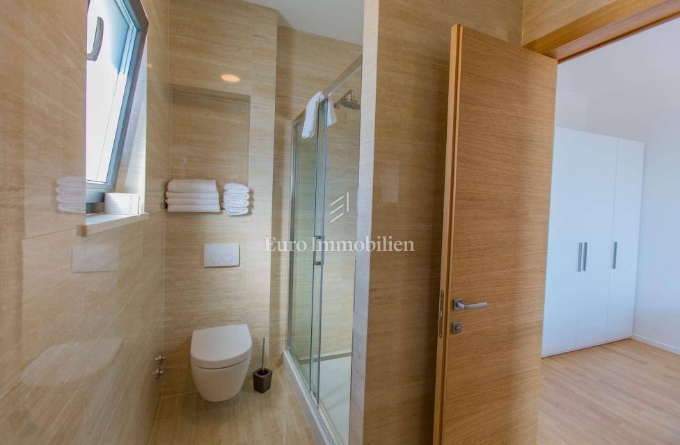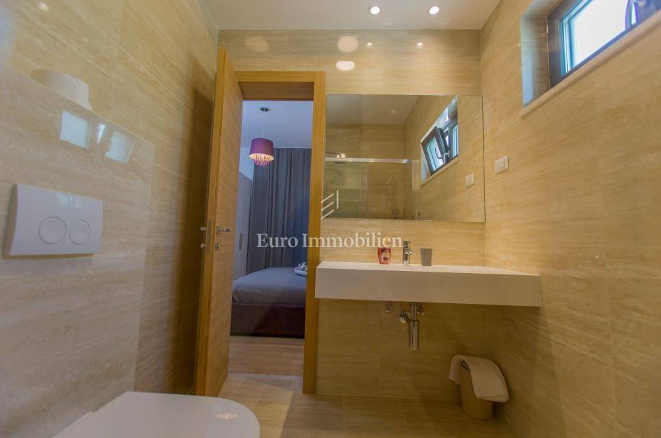 These luxury villas are a true work of art of contemporary architecture in a first-class location, in one of the most exclusive residential areas of the Adriatic coast. Each villa has a surveillance system and a controlled access point thus providing maximum security to its tenants. The plot that belongs to each villa has 350 m2 and includes a garden with trees that provide it with privacy. Villas can be purchased separately or together as a single complex.