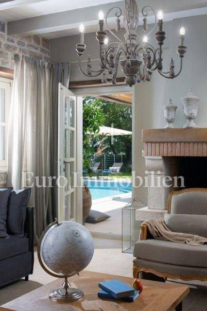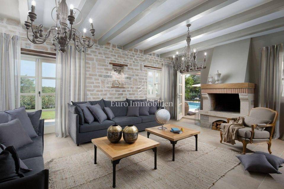 This beautiful villa is set within a luxury project with 5810 m2 of private land offering to the guests of these 4 villas an organic garden with seasonal vegetables, open-air fitness, 2 tennis courts, 2 bocce courts, as well as courts for handball, football, basketball and volleyball. For a true Istrian feel there are also 3 boskarins, white grey long horned Istrian cattle, a symbol of the region. Elegant, sophisticated and superbly located amidst picturesque Istrian countryside yet still within easy reach of sunny beaches and vivid seaside resorts, Villa offers luxurious accommodation in which you can instantly relax and savour every minute of your holiday. The ground floor is dedicated entirely to sumptuous living, with a wonderful long room divided by archways into living and dining/cooking areas with French doors bringing the abundance of warm Istrian light inside. Exposed stonework, beamed ceilings and a beautiful open fireplace create a warm and pleasant atmosphere, while a mix of modern and vintage furnishings and exquisite fittings provide you with high quality comforts. Three bedrooms are distributed over the upper floor and two are on the ground floor opening directly to the welcoming private pool area, which presents a fantastic place to relax and unwind, including a lovely, covered, authentic barbeque with a dining table that makes a wonderful retreat from the sun or the perfect place to enjoy your outdoor meals. You’ll never be short of things to do and places to visit, making this beautiful villa a great base for your Istrian getaway.