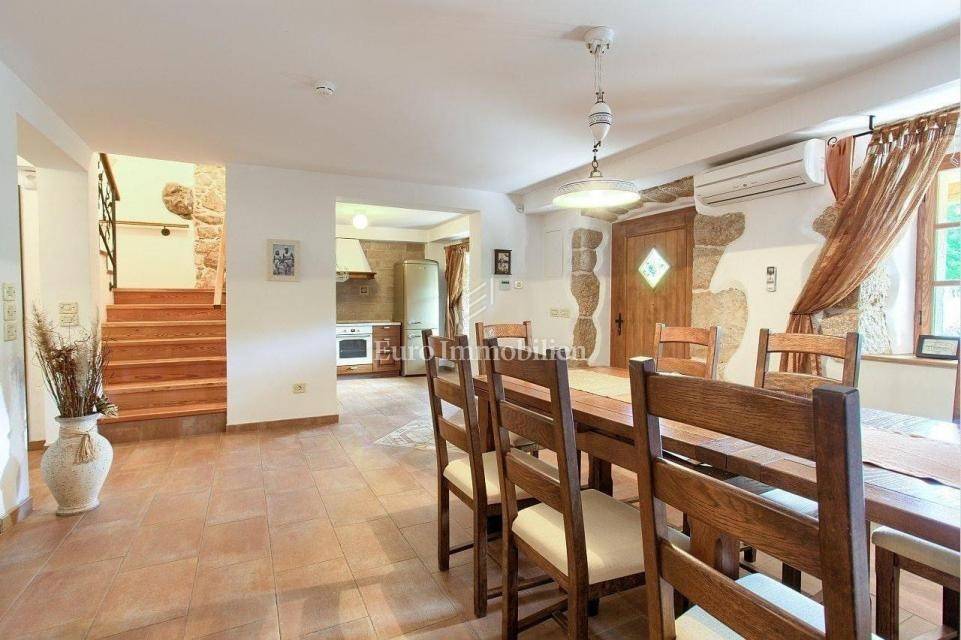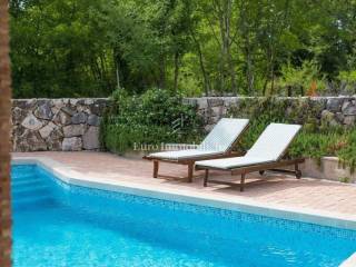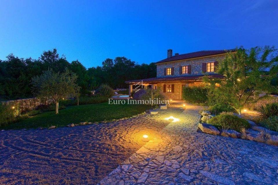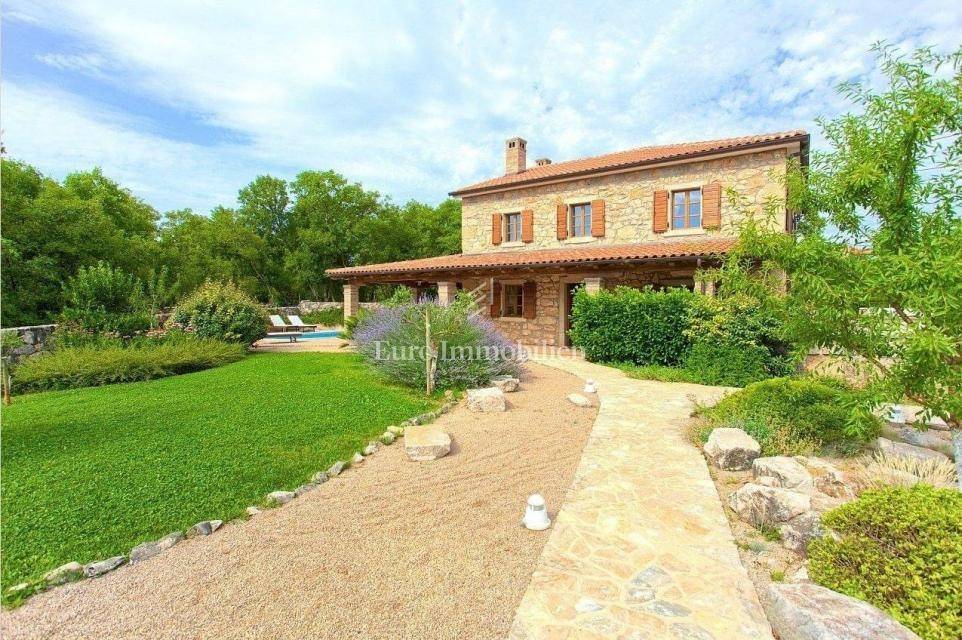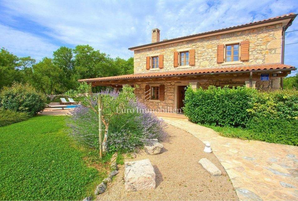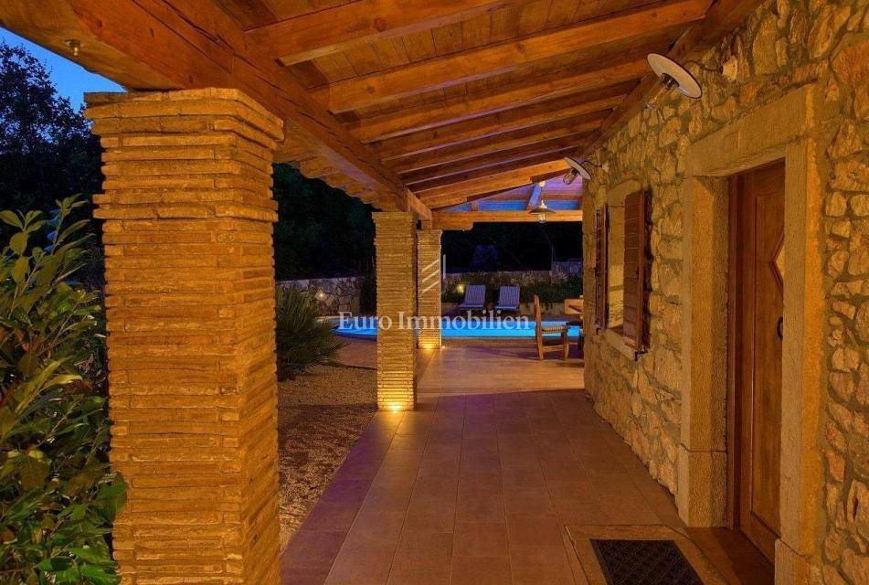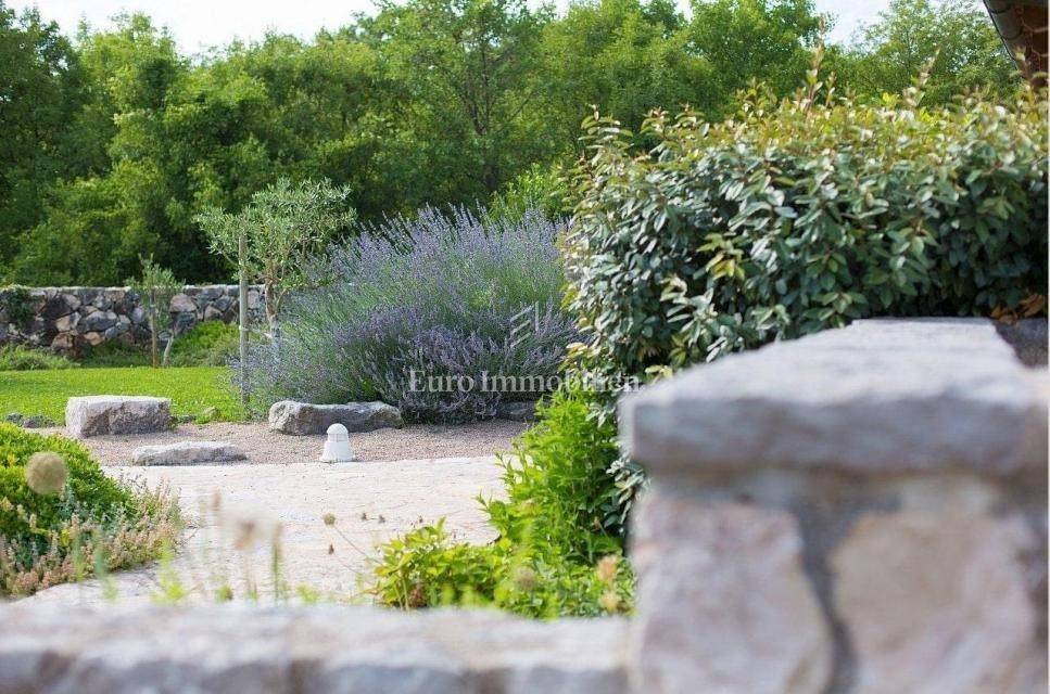 The island of Krk, Dobrinj area, renovated authentic old stone villa with beautifully landscaped garden and pool. The villa of 160 m2 of living space consists of the ground floor and first floor. The ground floor consists of a spacious living room with fireplace, kitchen and dining room, bathroom, toilet and a covered terrace. Upstairs are three bedrooms and bathroom. The villa is furnished, air conditioned, has underfloor heating, high quality ceramics and sanitary ware, video intercom, indoor and outdoor fireplace. The garden of 600 m2 is surrounded by original stone wall. The villa is located in a beautiful, quiet location 4 km from the sea.