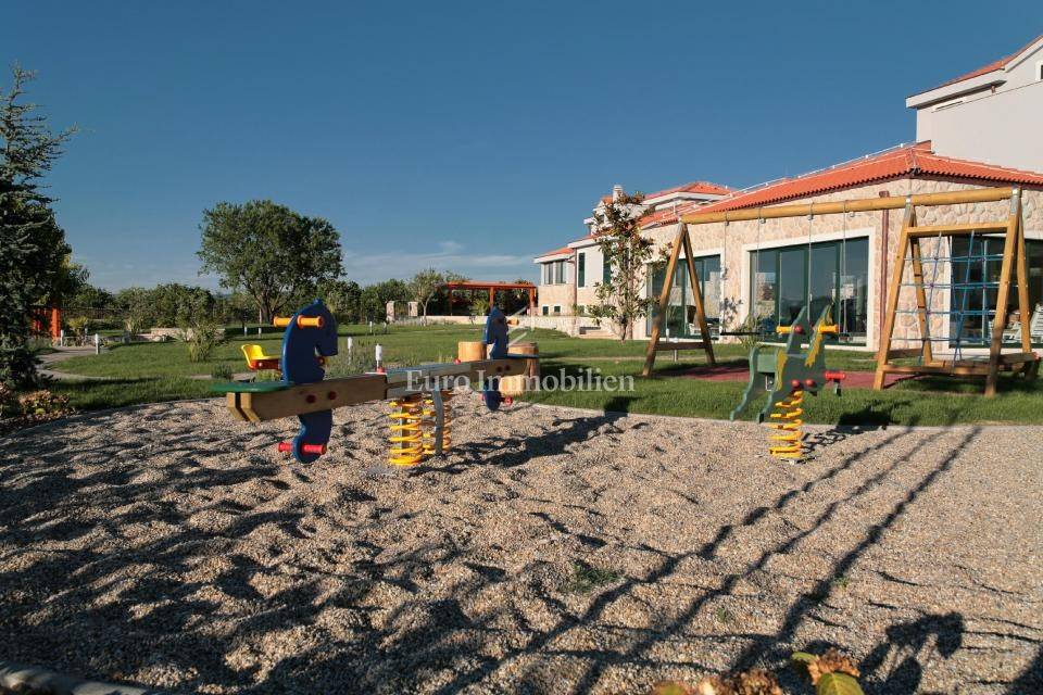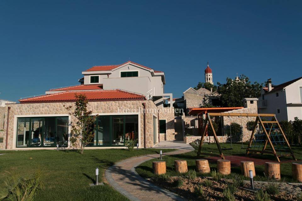 Villas are sold fully furnished. Around them is a landscaped yard with a children's playground, fruit trees, covered parking, and a space for socializing. Each property has its own separate plot. All rooms are air-conditioned, some have quality parquet while others have ceramic tiles. The beautiful design of the villas is additionally decorated with Brač stone. Excellent property in a great quiet location near the sea and marina for boats.