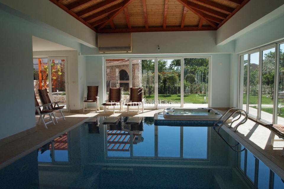 Villa 2 has a similar concept as the first villa with minor differences. In the basement, there are two storage rooms, a bathroom, two toilets, an indoor pool with a jacuzzi, and a beautiful wellness area consisting of a sauna, fitness, and massage room. The ground floor has a living room with a kitchen, two bedrooms, two bathrooms, and access to an uncovered terrace. Two more bedrooms, a living room with kitchen, bathroom, and two uncovered terraces are located on the first floor. This property is slightly larger than Villa 1 and the total area is 488.42m2.