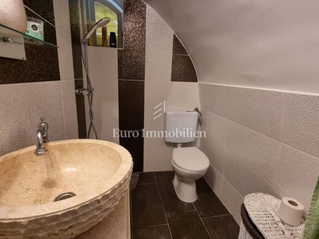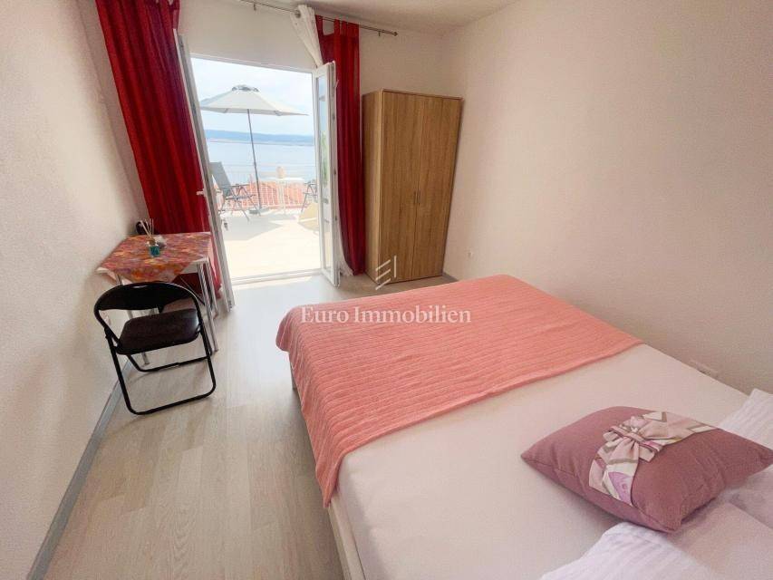 The house is located on an elevated part, so even from the ground floor there is a beautiful view of the sea. In front of the house is a large terrace with a barbecue and two auxiliary buildings, while the ground floor has a one-bedroom apartment. On the first floor, there is another one-bedroom apartment, fully decorated and furnished with a large covered terrace, while on the second floor there are three smaller studio apartments that lead out to the roof terrace with a panoramic view of the sea. Even smaller final investments are needed on the property, but for the most part it is decorated and ready to enjoy!