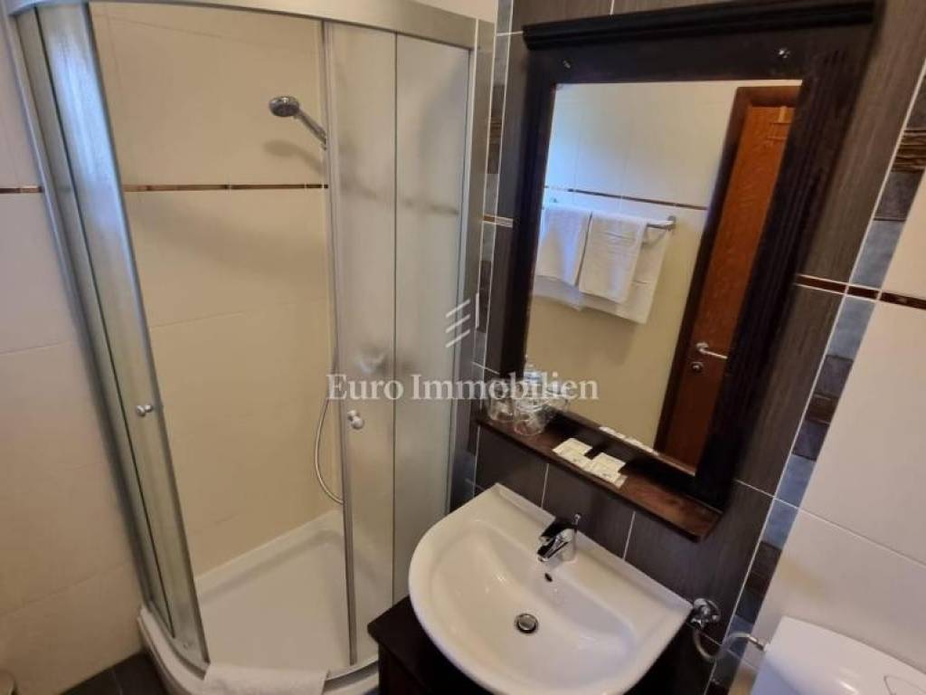 The property additionally has a spacious tavern, which can serve as a common area for guests or be converted into additional content according to the investor's wishes. On the landscaped garden there is a swimming pool with a sunbathing area, which ensures a high level of comfort and privacy. Private parking is also provided, which is a significant advantage in the tourism sector.