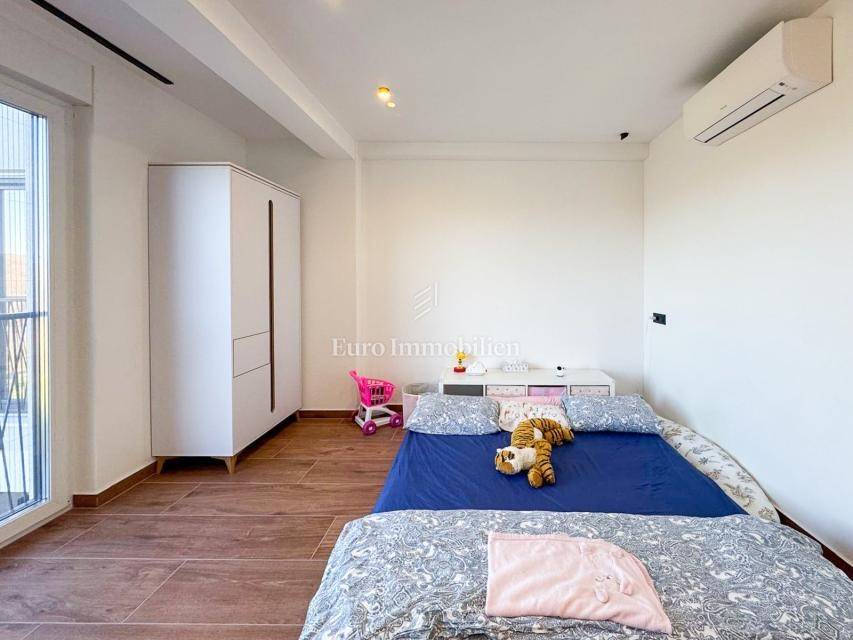 The villa with a netto living area of 170 m2 is located on a plot of land of 1,290 m2, and extends over the ground floor and first floor. The spacious ground floor consists of an entrance area, a guest toilet, a storage room and an open space living room and kitchen with a dining room from where you will go out to a covered terrace and pool. As part of the covered terrace, there is a summer kitchen with an open fireplace, a toilet and a storage room. Upstairs there are three bedrooms with their own bathrooms and a laundry room. For heating/cooling, air conditioners and a floor heating system via a heat pump are provided. The house will be equipped with a smart home system. PVC joinery has been installed. The yard will be decorated in a Mediterranean style. Complete completion of the villa is planned for the end of 2024.