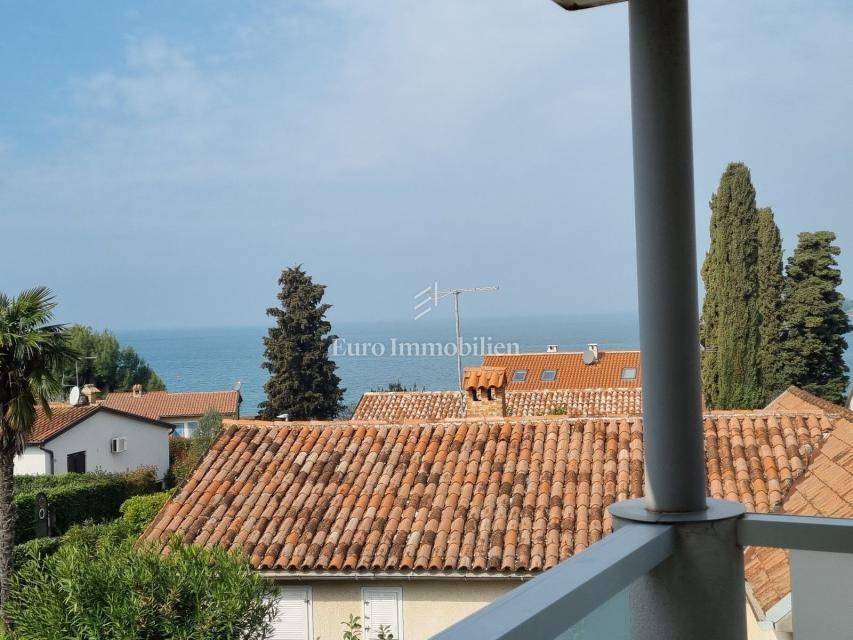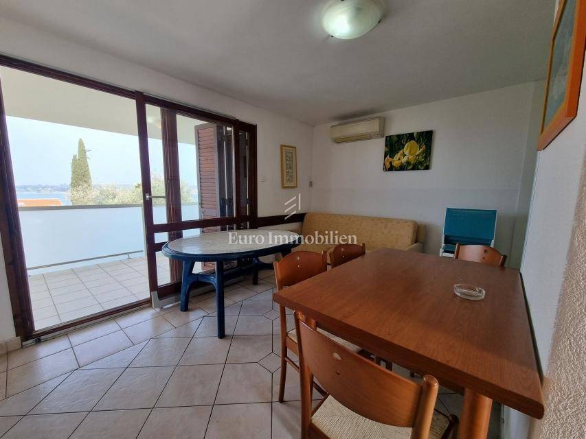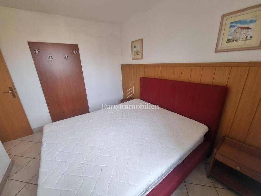The house extends over the ground floor and first floor. On the ground floor there is an apartment of 59.61 m2 with a terrace, consisting of a hallway, two bedrooms, a bathroom, a living room with a dining room and a kitchen. From the living room there is access to a spacious covered terrace and garden. The external stairs lead to the apartment on the first floor of the same square footage and layout. From the first floor there is a beautiful view of the sea from the bedrooms, the living room and the balcony. The apartments need minor renovation, but they are functional and are rented for tourist purposes. Heating/cooling is via air conditioning. The house has 369 m2 of garden with a barbecue and parking.