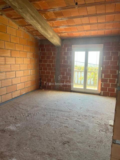 The upper two floors represent a spacious two-story apartment with three bedrooms, a living room with kitchen and dining area, two bathrooms, two toilets and four terraces. The apartment is in the unfinished phase, has all installations. The apartment offers an open view of the sea.