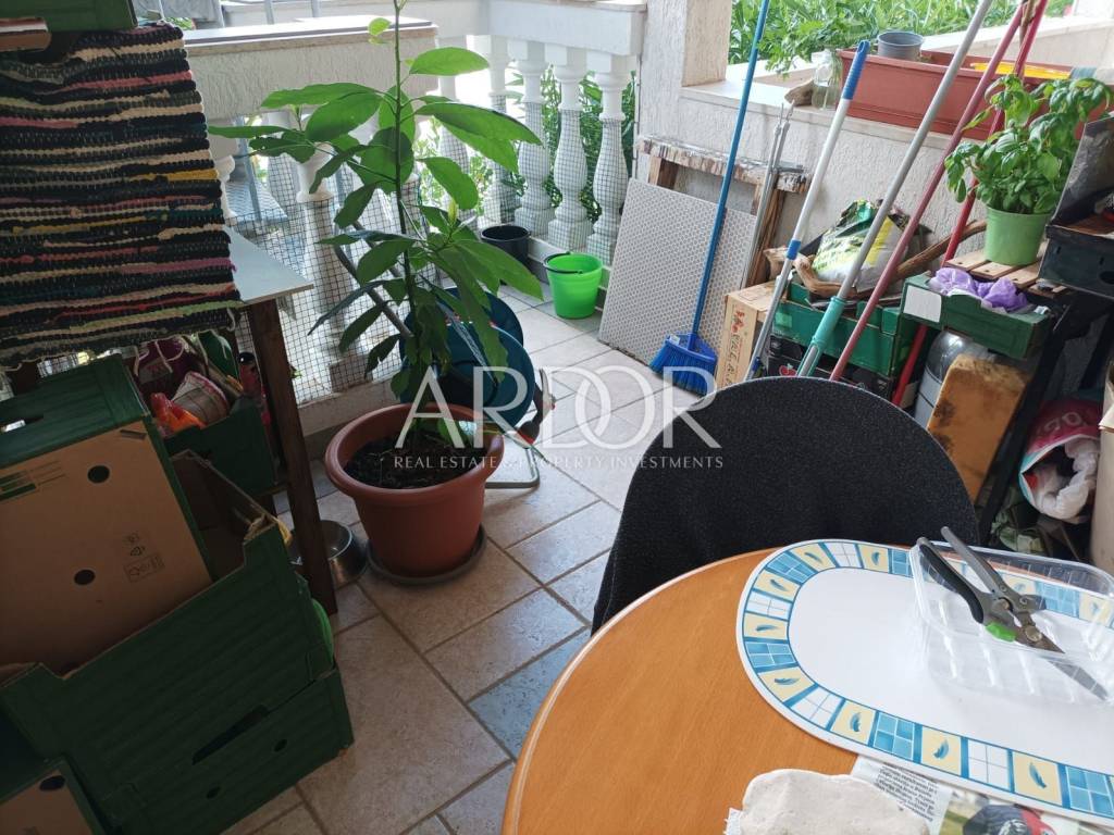 Barbariga. In a quiet street, 450m from the beach, we are selling this two-story house with a beautiful view of the sea as the biggest advantage. The lower floor consists of a kitchen with a dining room, a room, a bathroom, a storage room and a terrace with a view of the sea, and on the upper floor there are two bedrooms, a bathroom and a nice, large terrace with a wonderful view of Brijune. A separate staircase leads to the upper floor, so a tourist rental is also possible. All the necessary facilities (restaurants, shops...) are approx. 250m away, and the covered parking space, which is owned, is located in front of the house.
