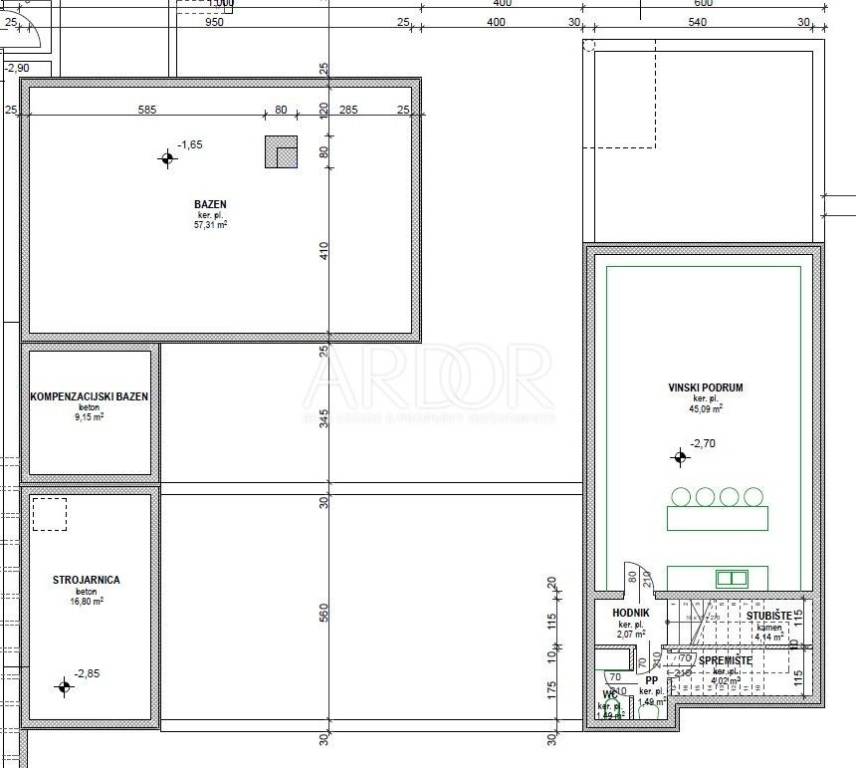 The basement further enriches this luxurious villa - it contains a fitness area, a tavern and a 45 m² wine cellar.