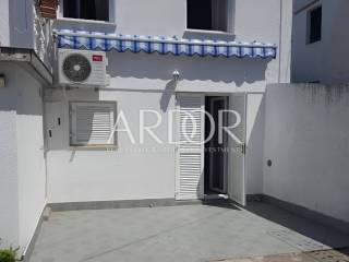 On the first floor there is a larger apartment of 75m2 with two bedrooms, a kitchen, living room, bathroom and toilet. The apartments on the ground floor have two terraces of 15m2 each. On the first floor there is a large balcony with a beautiful view of the sea and Kvarner. The heating is currently air conditioning and a wood stove.