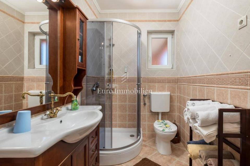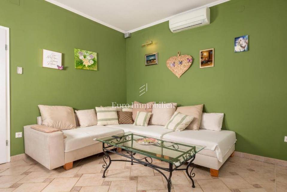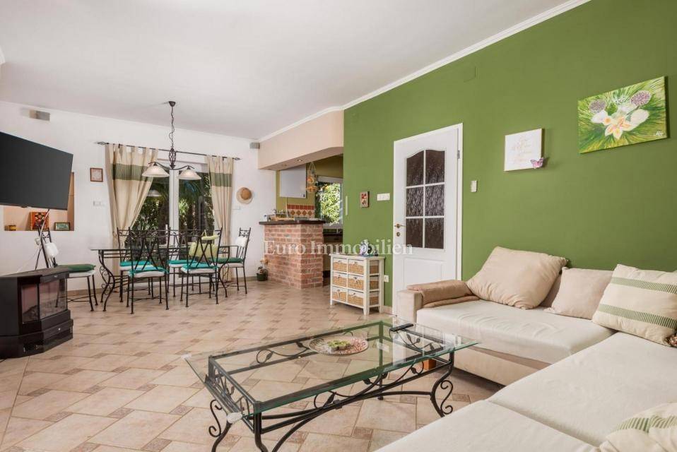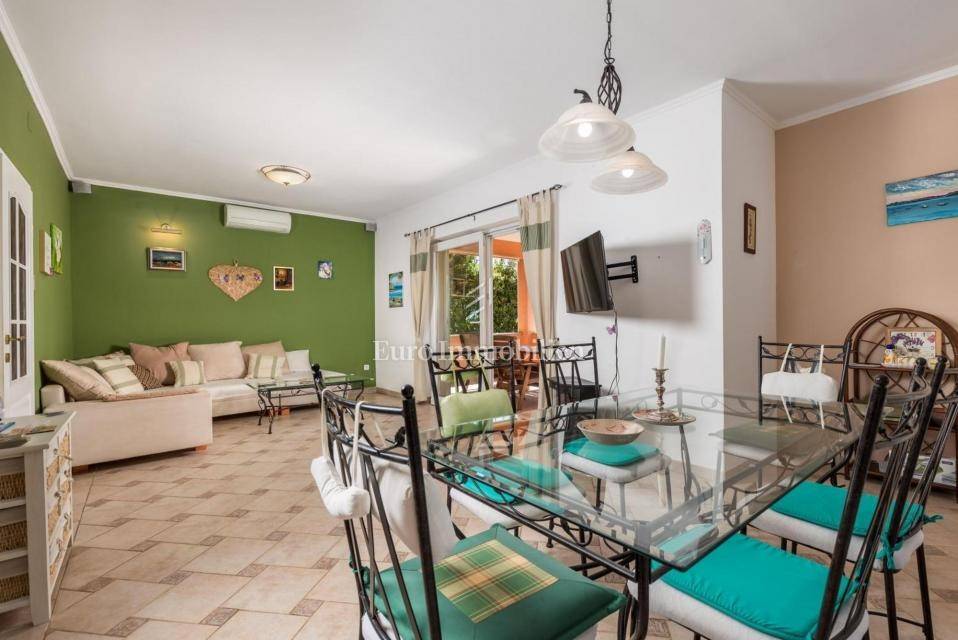 Just 200 meters from the beach, a detached family house is for sale, located within a beautifully landscaped garden enriched with Mediterranean flowers and greenery. The property offers complete privacy and a comfortable lifestyle. The house has two separate entrances, with interior spaces connected by an internal staircase.