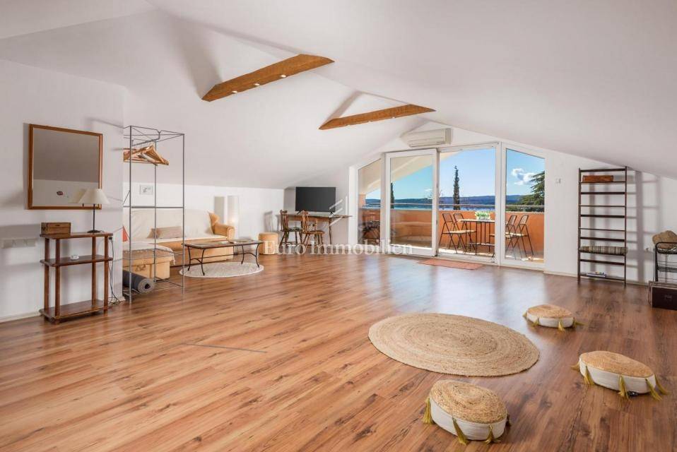 The first floor consists of three vintage-style bedrooms, a terrace with a sea view, and a bathroom. The top floor offers a spacious open area currently used as a relaxation zone, with a bathroom and a lovely loggia overlooking the sea.