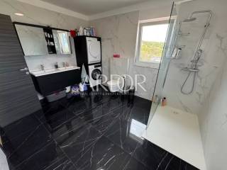 A newly built house is for sale in Vrbnik, with a living area of 152 m², situated on a plot of 828 m². The land is large enough for the additional construction of a swimming pool, garage, or auxiliary building.