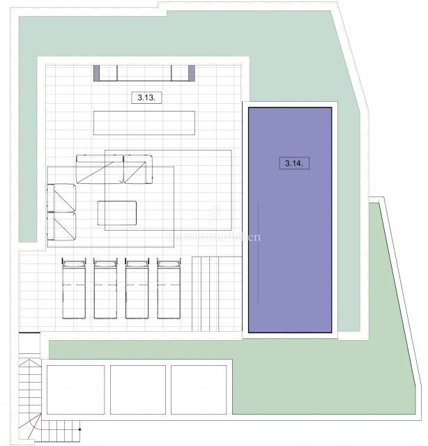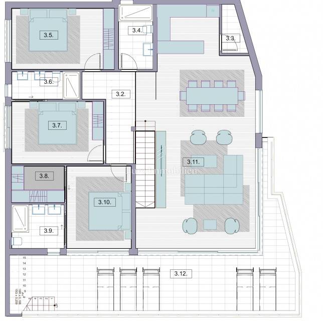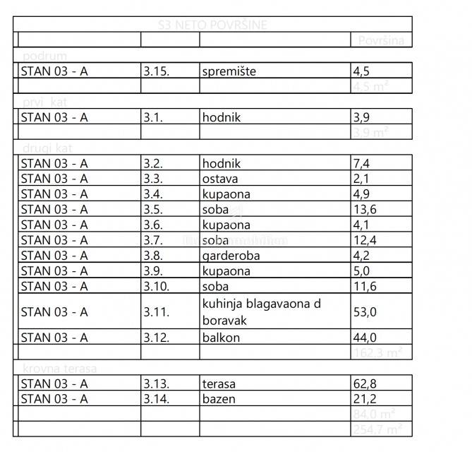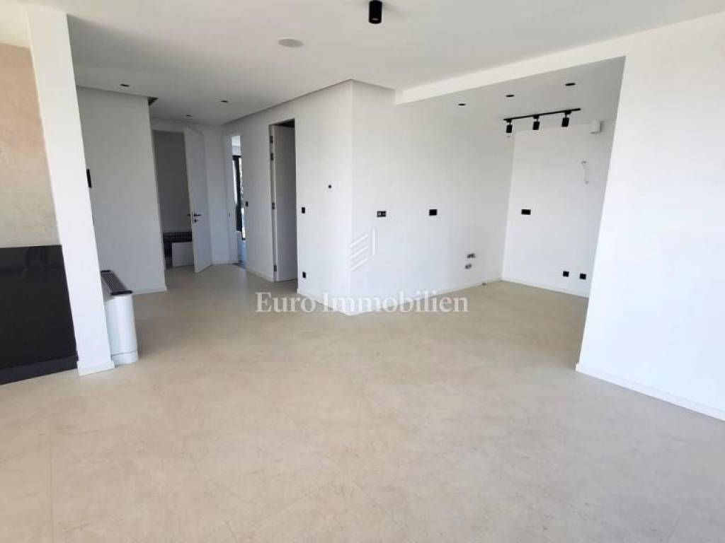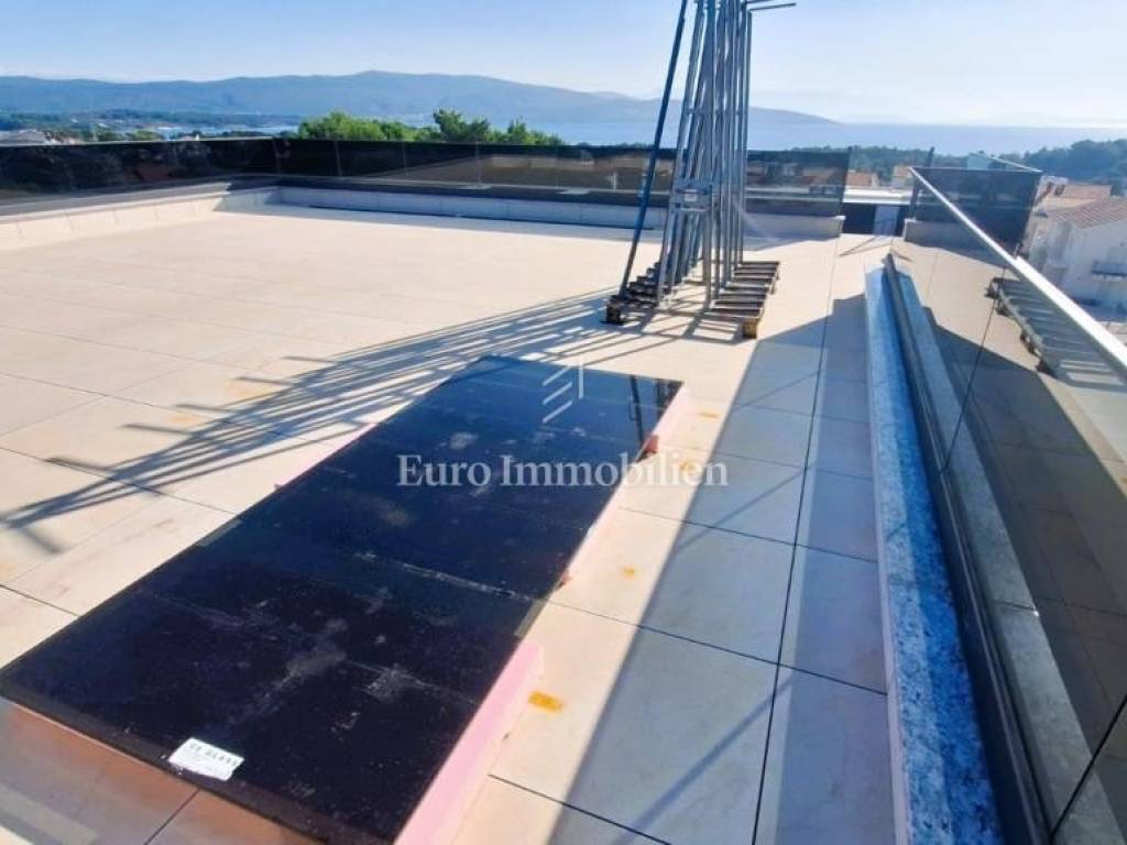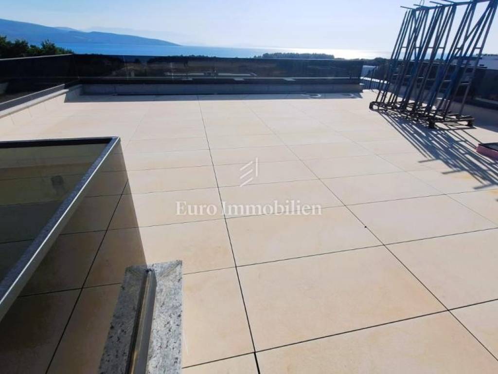 The apartment has a swimming pool and a roof terrace! It consists of a hallway, living room with kitchen and dining area, three bedrooms, three bathrooms, and a storage room. It is located on the second floor and has a beautiful panoramic sea view. The apartment also has a storage room and two parking spaces. It will be equipped with air conditioning, and quality carpentry and the owner can choose the details related to interior design.