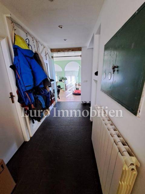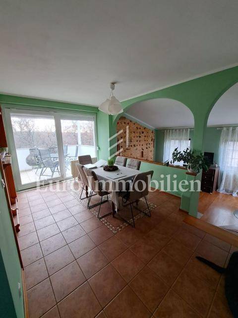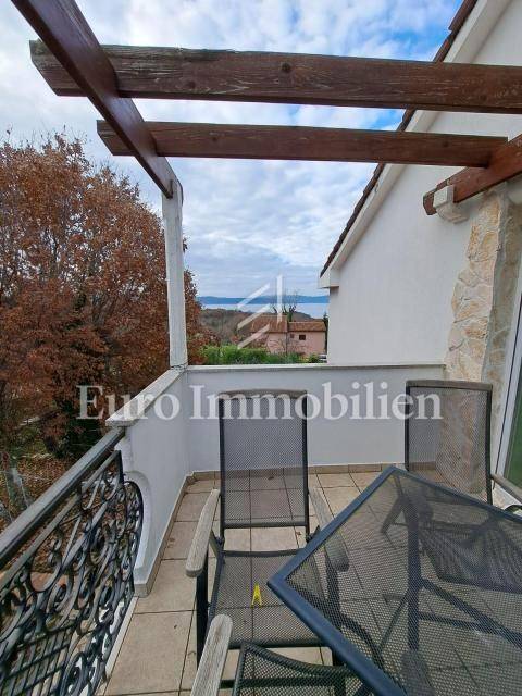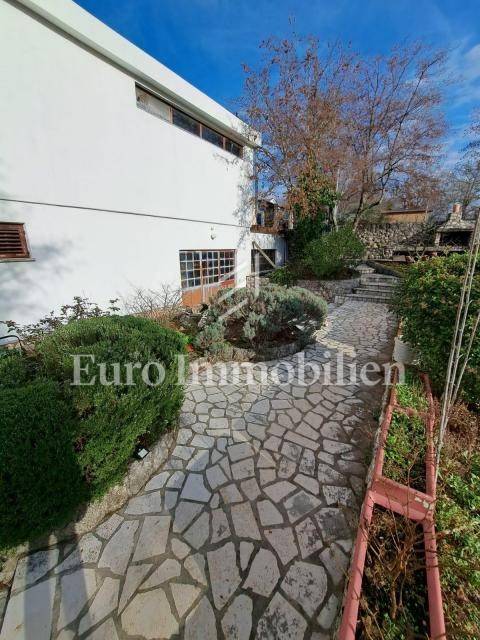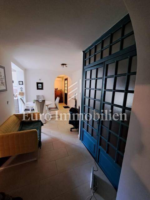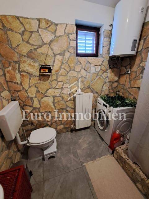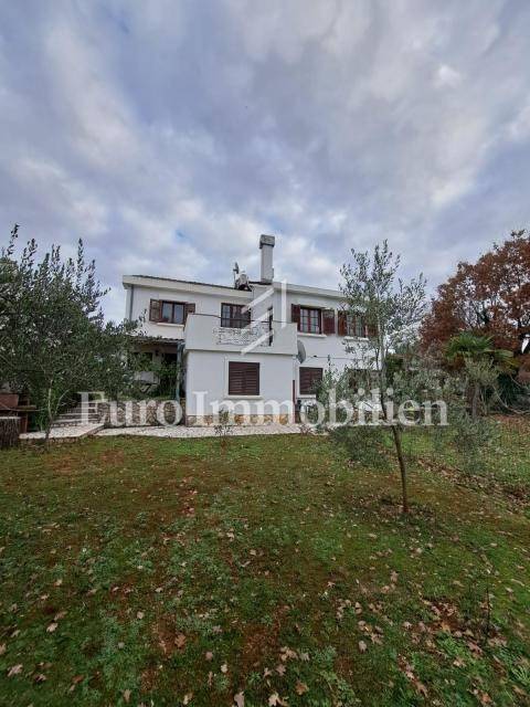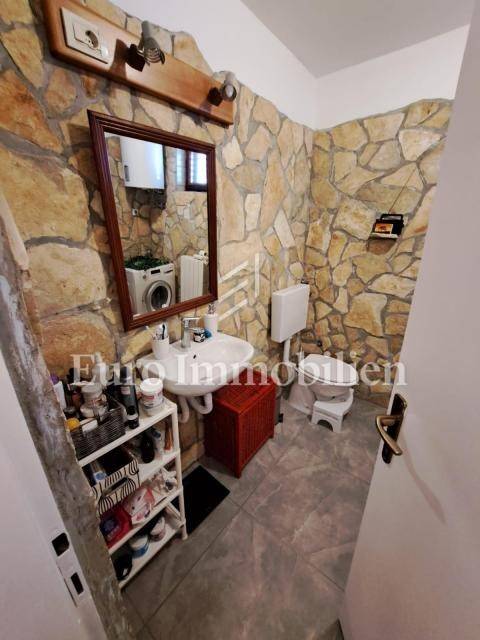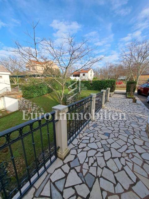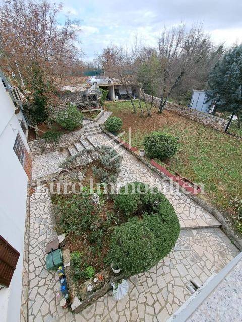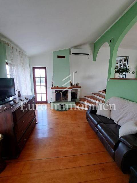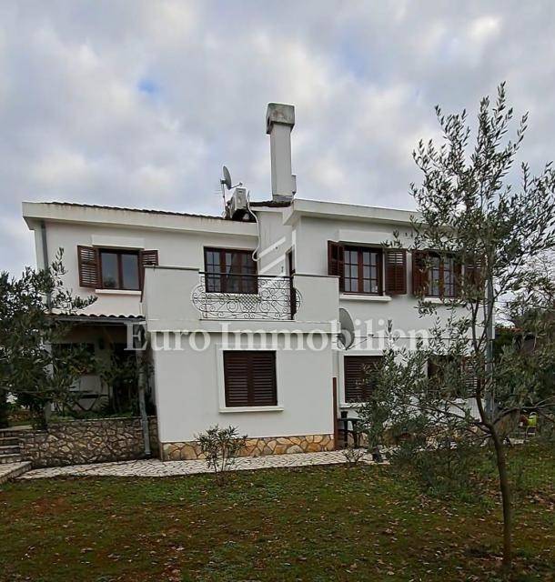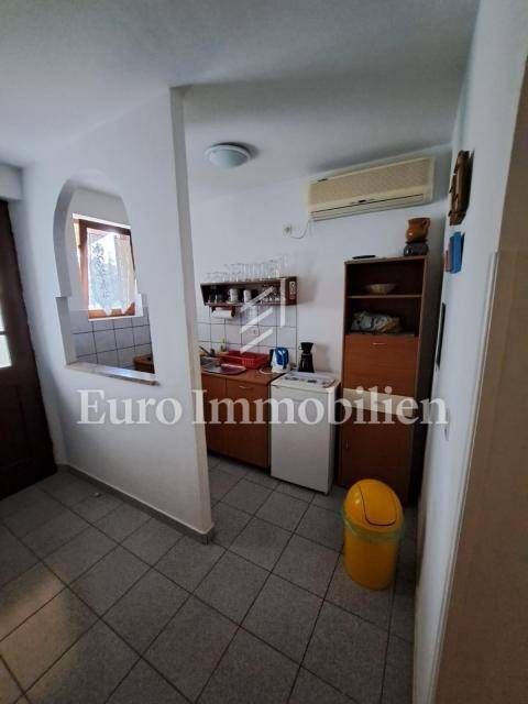 The house has 399,68m2 of living space and 1280m2 of garden. The house is a two-story building and consists of the ground floor and the first floor, but there is a project for the construction of the second floor. On the ground floor, there are two two-bedroom apartments with a living room, a workshop of approx. 60m2 and a boiler room where there is a stove for central heating with oil, wood, or pellets. Radiators are located in all rooms of the house. On the first floor is a spacious apartment with a living room, kitchen, dining room, three bedrooms, bathroom, storage room, and toilet. The house has a garage with parking spaces in the garden. All residential units are fully air-conditioned and fully furnished. The balcony offers a beautiful view of the sea. The property is characterized by quality construction, a good location, and a large, spacious garden. There is a possibility of building a swimming pool in the garden. Great investment for tourist rental, but also for living!