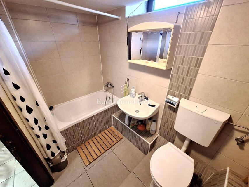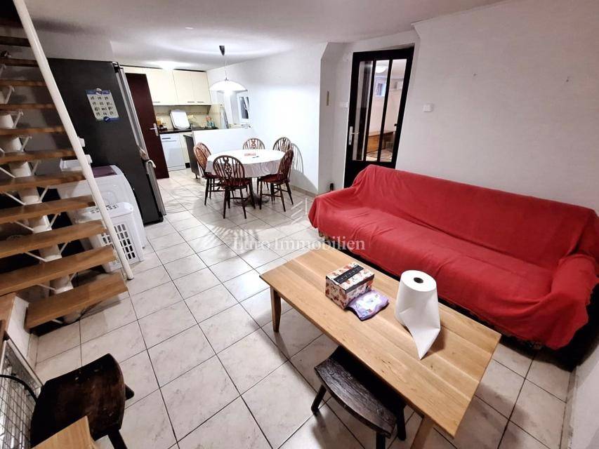 A detached house of 78 m2 with approximately 80 m2 of garden is for sale. The house consists of a basement and a high ground floor with three bedrooms, a living room and kitchen, a bathroom, a hallway, a cellar and a storage room. The house also has access to a spacious terrace with a sea view. The house is furnished, air-conditioned. Two parking spaces in the garden.