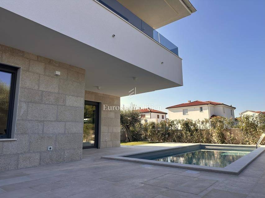 Quality construction and equipment: stone details on the facade and in the surroundings, water underfloor heating powered by a Vaillant heat pump, Toshiba inverter air conditioners, swimming pool with electrolysis and heat pump, electrically operated shutters.