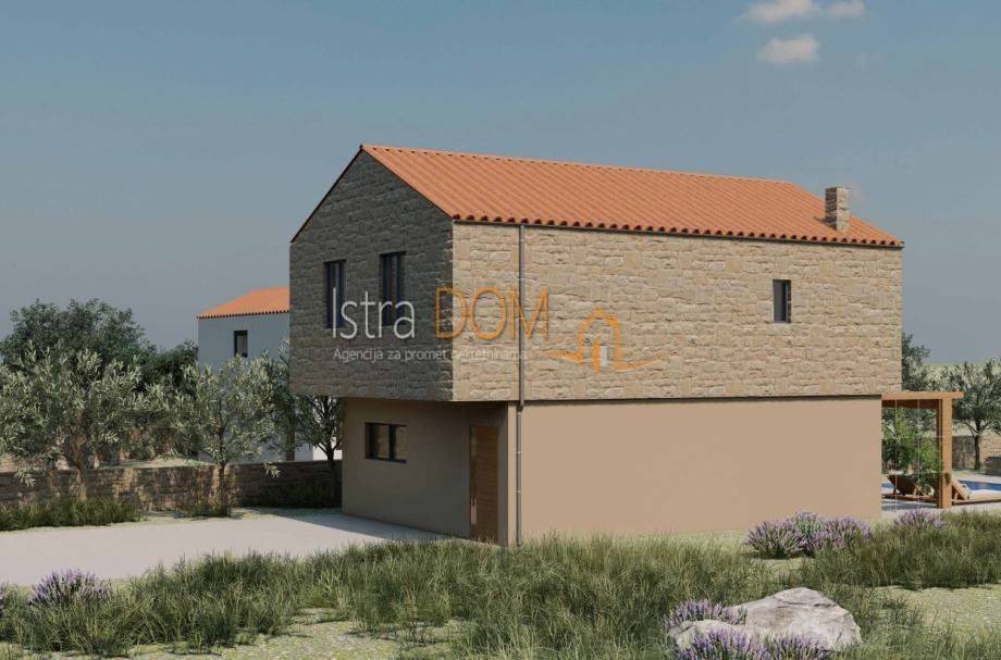 Građevinsko zemljište s projektom i građevinskom dozvolom – kuća s bazenom, Čabrunići (Istra)