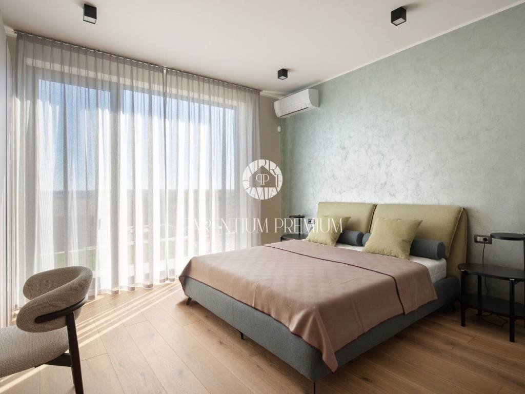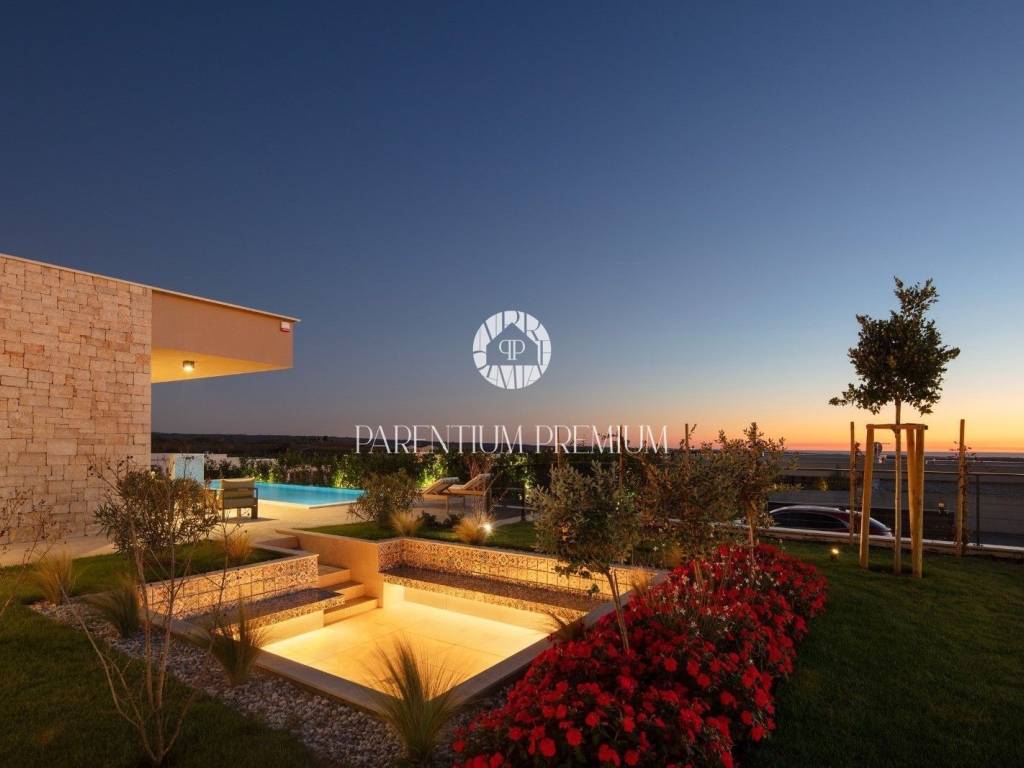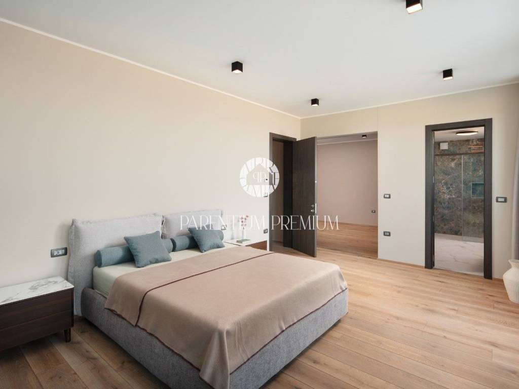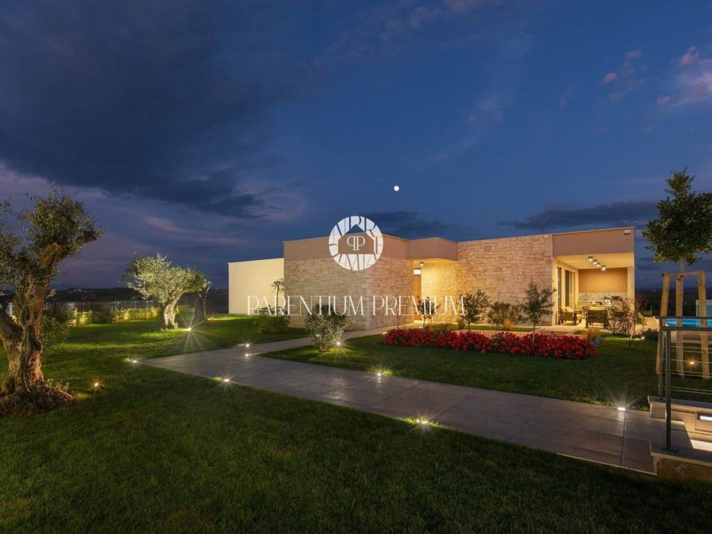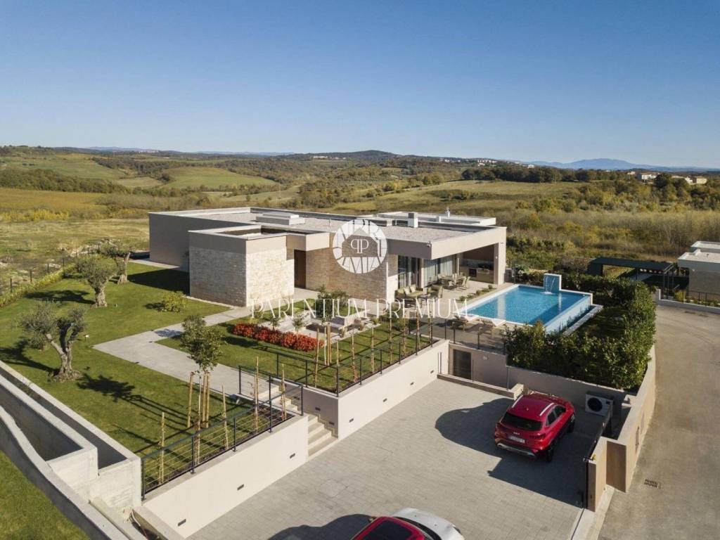 Istria, NovigradOn a gentle hill, in the heart of magical Istrian nature, surrounded by vineyards and olive groves stretching to the horizon, lies this contemporary luxury villa – a home that blends elegant modern design with the warmth of the Mediterranean. Surrounded by complete tranquillity and greenery, the villa offers 320 m² of living space on a spacious plot of approx. 1,500 m². Every corner has been carefully designed to provide the perfect balance of luxury, privacy and comfort, with beautiful views of the sea, vineyards, and the rolling hills of Buje and Brtonigla. The sea is just 6 kilometres away, offering an ideal combination of coastal proximity and absolute peace.The villa is situated at the intersection of three countries – Croatia, Slovenia and Italy. The location is strategically exceptional: Trieste is only 35 km away, while winter ski resorts are reachable in just 2.5 hours. Three international airports are nearby (Pula 45 min, Trieste Ronchi 45 min, Ljubljana 1.5 h), with Venice and Treviso around 2.5 hours away. The private airport of Portorož is just 15 minutes away, making this property highly attractive for investors, yacht owners, business travellers, family offices and luxury buyers from across Europe.The villa is positioned to enjoy sunlight throughout the entire day, with impressive sunsets stretching over the sea.It is spread over two levels:The lower level features a wellness area with sauna, gym, entertainment/lounge space (which can be converted into a home cinema), storage and a technical room.The ground floor consists of the main living area – four spacious bedrooms each with its own en-suite bathroom, a guest toilet, and an open-plan living room with a fireplace, kitchen and dining area. Large glass walls connect the interior with the outdoor terraces and loggias, creating a sense of openness and unity with nature. On the sunny terrace, there is a heated infinity pool of 40 m² and 1.7 m depth, finished with ceramic tiles and equipped with a water electrolysis system.The villa is newly built and fully furnished with premium materials and contemporary design. It is equipped with underfloor heating via a heat pump, air conditioning units, and a fireplace in the living room.The landscaped garden features authentic Mediterranean greenery, olive trees and lavender, while the spacious yard and stone-paved terrace provide an ideal place for relaxation and outdoor enjoyment.Brtonigla is one of the most charming Istrian towns, known for wine, olive oil and excellent gastronomy. The villa is located in a peaceful area with breathtaking views, close to renowned wineries, cycling routes and traditional taverns. The sea and beaches are only ten minutes away.This villa is not just a home – it is a peaceful, luxurious lifestyle immersed in nature, with a view that inspires every single day. Perfect as a family residence, holiday home or high-end rental investment.