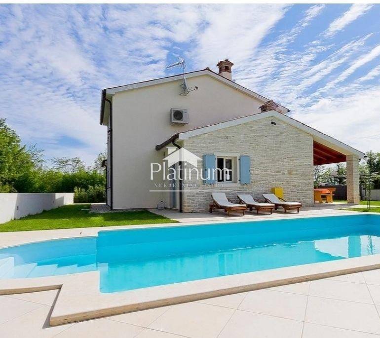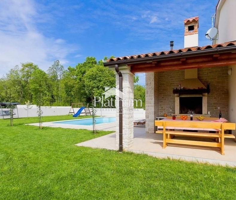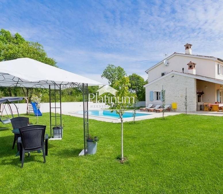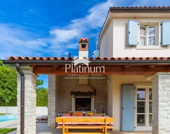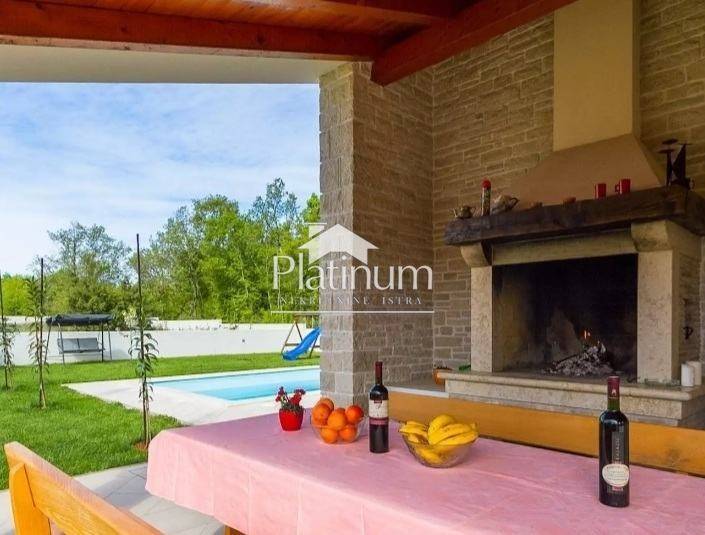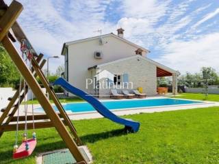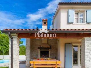 This beautiful villa is built to a high standard and traditional style. The interior hides a beautifully decorated space with attention to detail. The villa is located in the municipality of Marčana. This is an ideal destination for those looking for a peaceful vacation, far from the summer bustle and overcrowded tourist centers. The coast is 36 km long, and is the least urbanized zone in Istria with crystal clear sea surrounded by lush greenery. Everything is surrounded by green hills and blue bays, many of which are only accessible by boat. The entire environment is ideal for walking along the Istrian wine and olive roads, and viewing old dry walls and Istrian kažuns, autochthonous field houses. In addition to cultural heritage, this region also has a rich gastronomic offer that we recommend you try! The coast is 36 km long, and is the least urbanized zone in Istria with a crystal clear sea surrounded by lush greenery. A villa of 165 m3 with a yard of 800 m2 and a pool of 36 m2. It consists of a ground floor and a first floor and contains three bedrooms, three bathrooms, a toilet, a living room, a kitchen with a dining room, two terraces, a storage room. The pool facility is above ground in a separate building. Two outdoor and indoor fireplaces, solar, central heating, large gas tank, cameras, underfloor heating, air conditioning, alarm, safe, outdoor shower. It is sold fully furnished. Info on 00285 91 924 9486