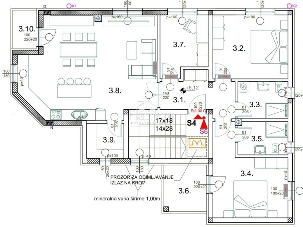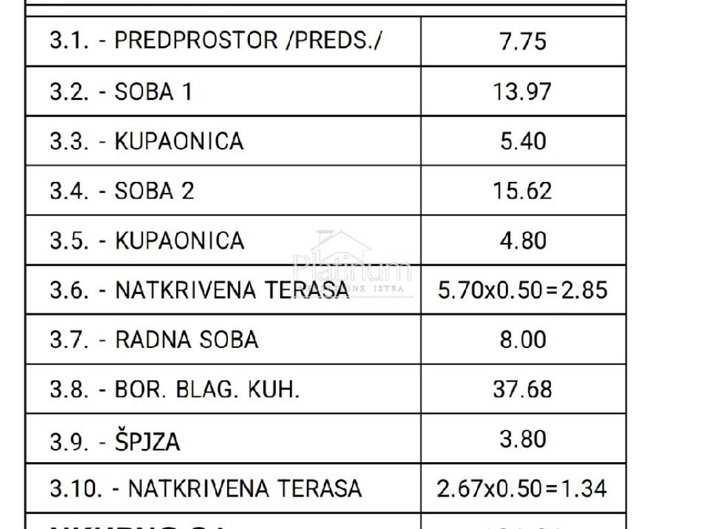 PULA SURROUNDINGS we are selling a penthouse under construction, 2nd floor, area 101m2 + 2 parking spaces, 3 bedrooms, 2 bathrooms, pantry, living room, dining room with kitchen, parking. Big terrace. Climate. Underfloor heating. Completion of works