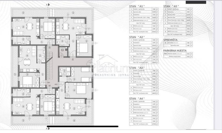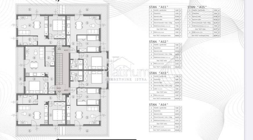 We offer apartments under construction in four buildings. Three buildings have fifteen apartments each, while one building has thirteen apartments. The first building consists of a ground floor and two floors, and there are five apartments on each floor. One of the apartments is located on the first floor and consists of a hallway, wardrobe, bathroom, two bedrooms, living room with kitchen and dining room, and a covered terrace. The possibility of buying on credit The buyer does not pay real estate sales tax The dynamics of payment is according to the phases of the project and in agreement with the investor. Construction will begin in the spring of 2024, and completion is planned for December 2025. Info on the number 00385 91 924 9486 00385 95 198 7708