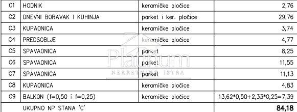 In a quiet part of Medulin, this apartment is for sale on the second floor, consisting of a hallway, living room and kitchen, hallway, three bedrooms, two bathrooms and a balcony. It is possible to purchase a garage or parking space and a storage room with the apartment. Heatin