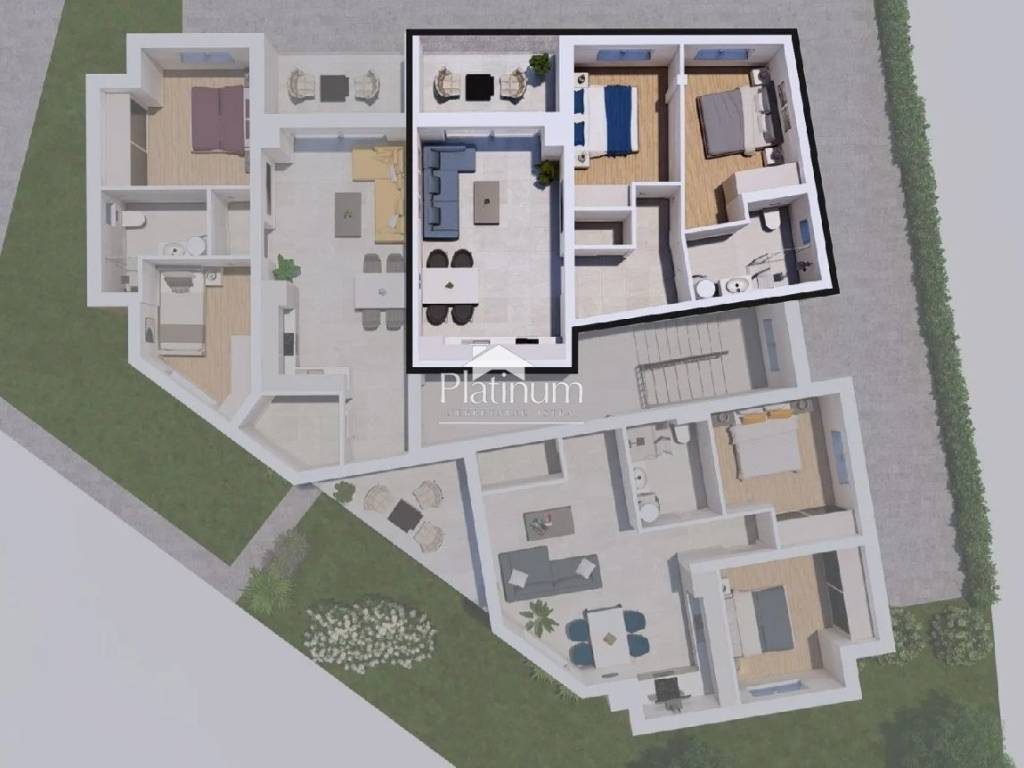 ISTRIA FAŽANA PEROJ We sell apartments on the 1st and 2nd floors with attached garages (16m2-25m2). The apartments are 58m2 and 60m2 in size, and consist of a hallway, bathroom, living room, kitchen with dining area and a comfortable terrace with a sea view. we sell beautiful apartments under construction in a top location. The building consists of only 6 beautiful apartments built very well, the installed materials are of the highest quality. All apartments have built-in underfloor heating and inverter air conditioning for heating and cooling. Possibility of choosing the installation of flooring materials (laminate and 1st class tiles). DIERRE security doors. Electric blinds on all windows. 500M FROM THE SEA!!! Completion of construction at the end of 2025. PRICE WITH VAT WE ACCEPT RESERVATIONS INFO AT 00385911608456