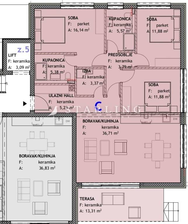 APARTMENT, SALE, NEW BUILDING, ROVINJ, 113 m2 Luxury apartment with a total living area of 113 m2 in a phenomenal location, only 250 m from the sea. The apartment is located on the ground floor of an urban villa with an elevator, which has a total of six apartments. The elevator goes from the underground garage to the first floor, but the special feature of this apartment is that it has its own separate entrance. The apartment consists of an entrance hall with a wardrobe, an open space consisting of a living room with a kitchen and dining area, a utility room, three bedrooms, two bathrooms, and a covered terrace. The apartment also includes a garden of 125 m2, two parking spaces in the underground garage, and a private storage room of 5.86 m2. Completion of construction is planned at the end of 2023. Heating/Cooling: air conditioners, underfloor heating with city gas. Orientation: West. Distance from the sea: 250 m. Parking: 2 parking spaces in the underground garage. Elevator: The building has an elevator. Ownership: 1/1, no encumbrances. Price: 583,000 euros.